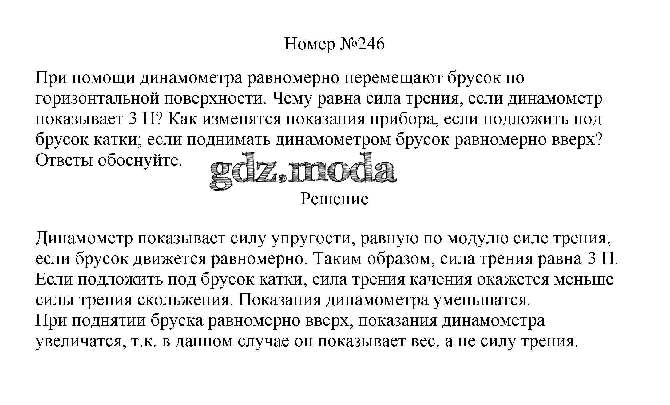 ОТВЕТ на задание № 246 Сборник вопросов и задач по Физике 7-9 класс Марон Вертикаль