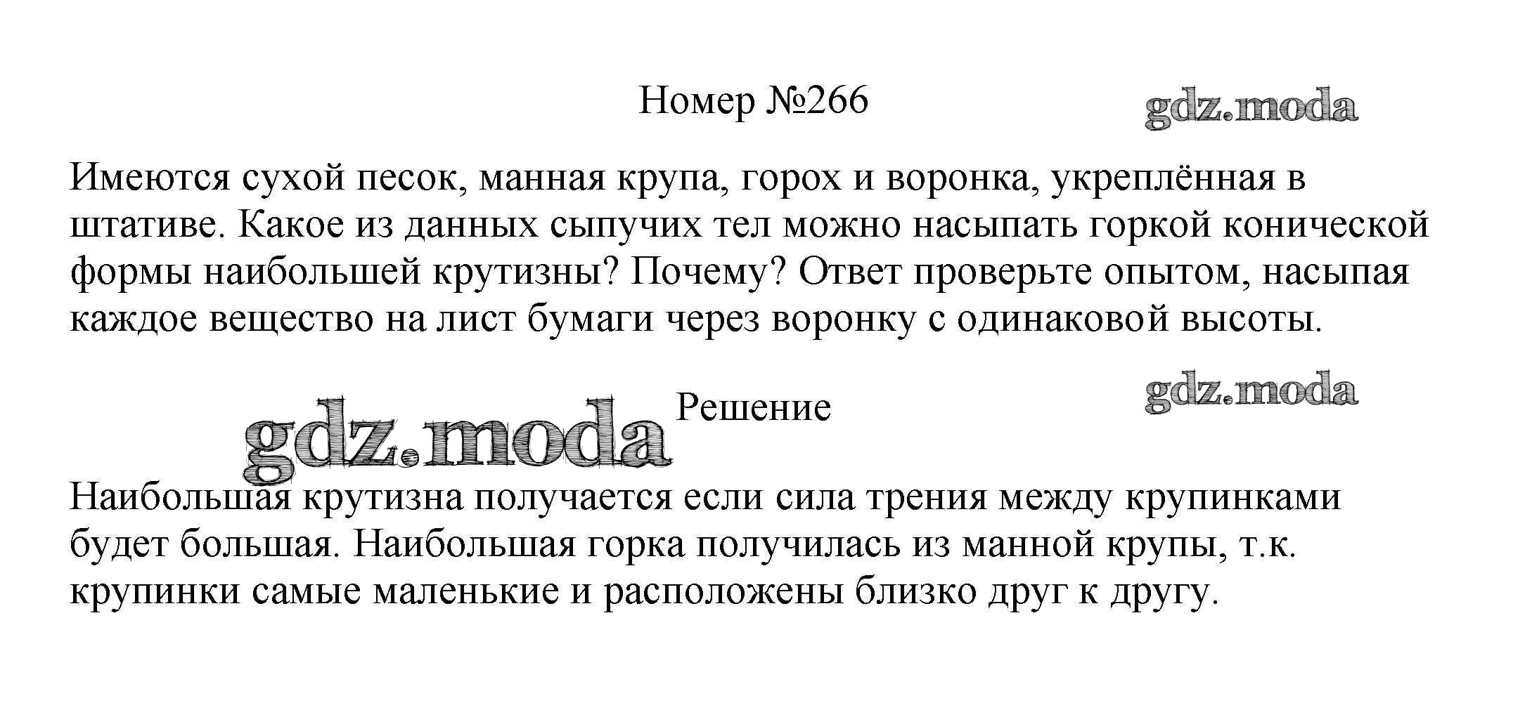 ГДЗ решение к заданию № 266 Физика 7-9 классы сборник вопросов и задач Марон А.Е. Дрофа 2013 ФГОС бесплатно на гдз.мода!