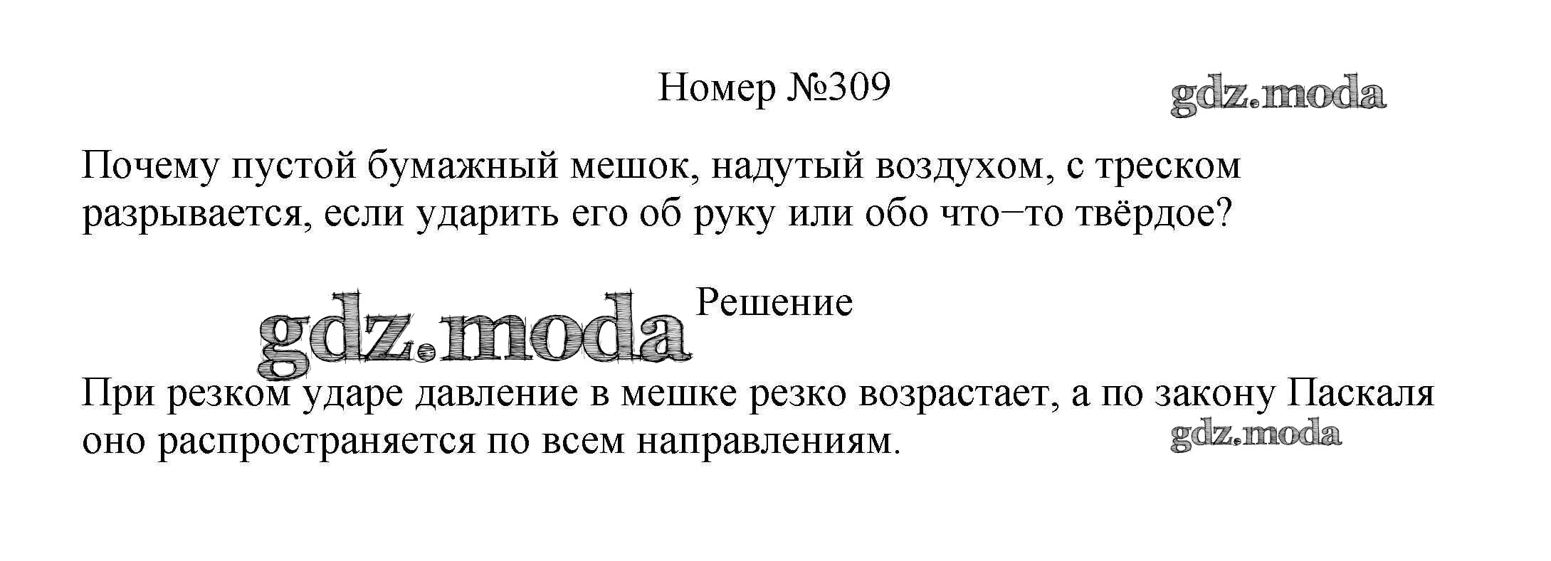 ГДЗ решение к заданию № 309 Физика 7-9 классы сборник вопросов и задач Марон А.Е. Дрофа 2013 ФГОС бесплатно на гдз.мода!