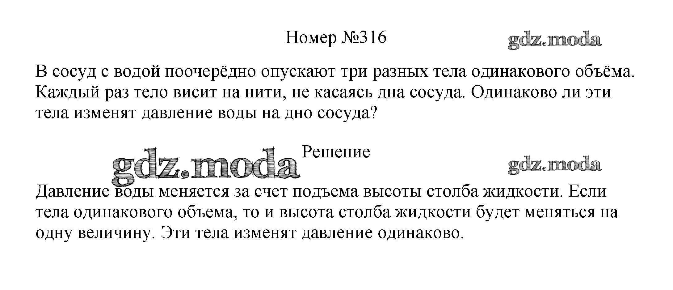 ОТВЕТ на задание № 316 Сборник вопросов и задач по Физике 7-9 класс Марон Вертикаль