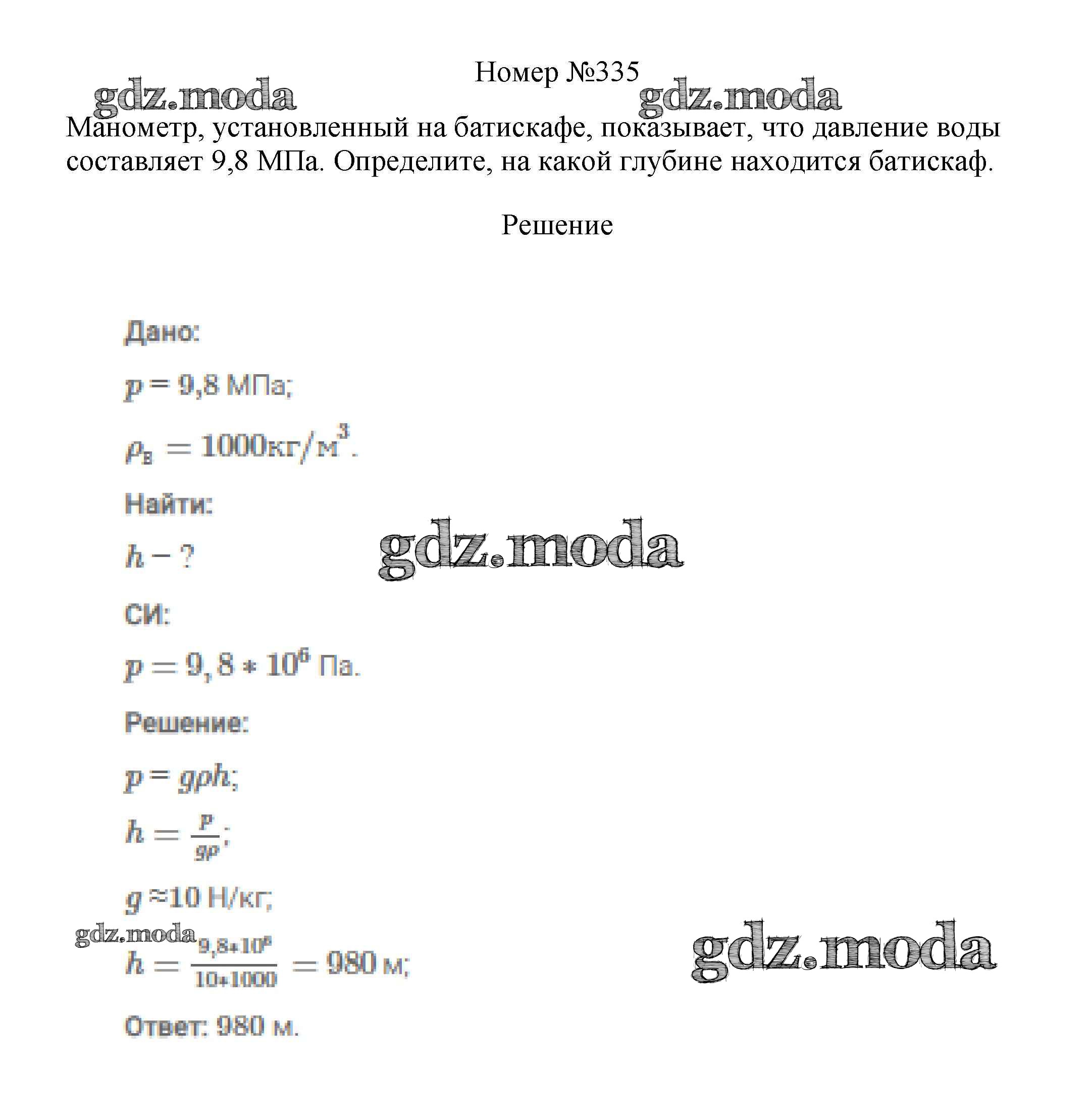 ОТВЕТ на задание № 335 Сборник вопросов и задач по Физике 7-9 класс Марон Вертикаль