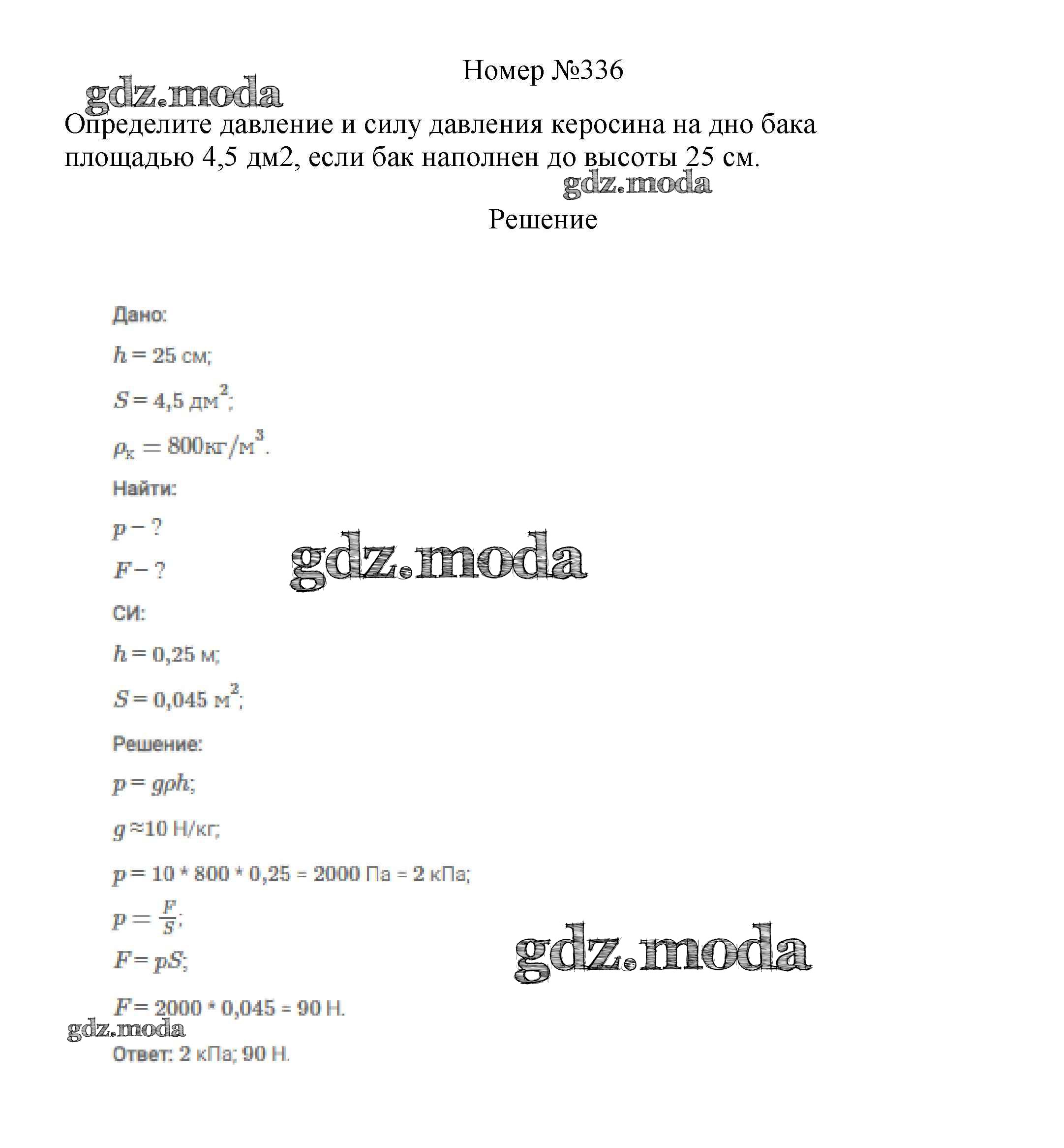 ОТВЕТ на задание № 336 Сборник вопросов и задач по Физике 7-9 класс Марон Вертикаль