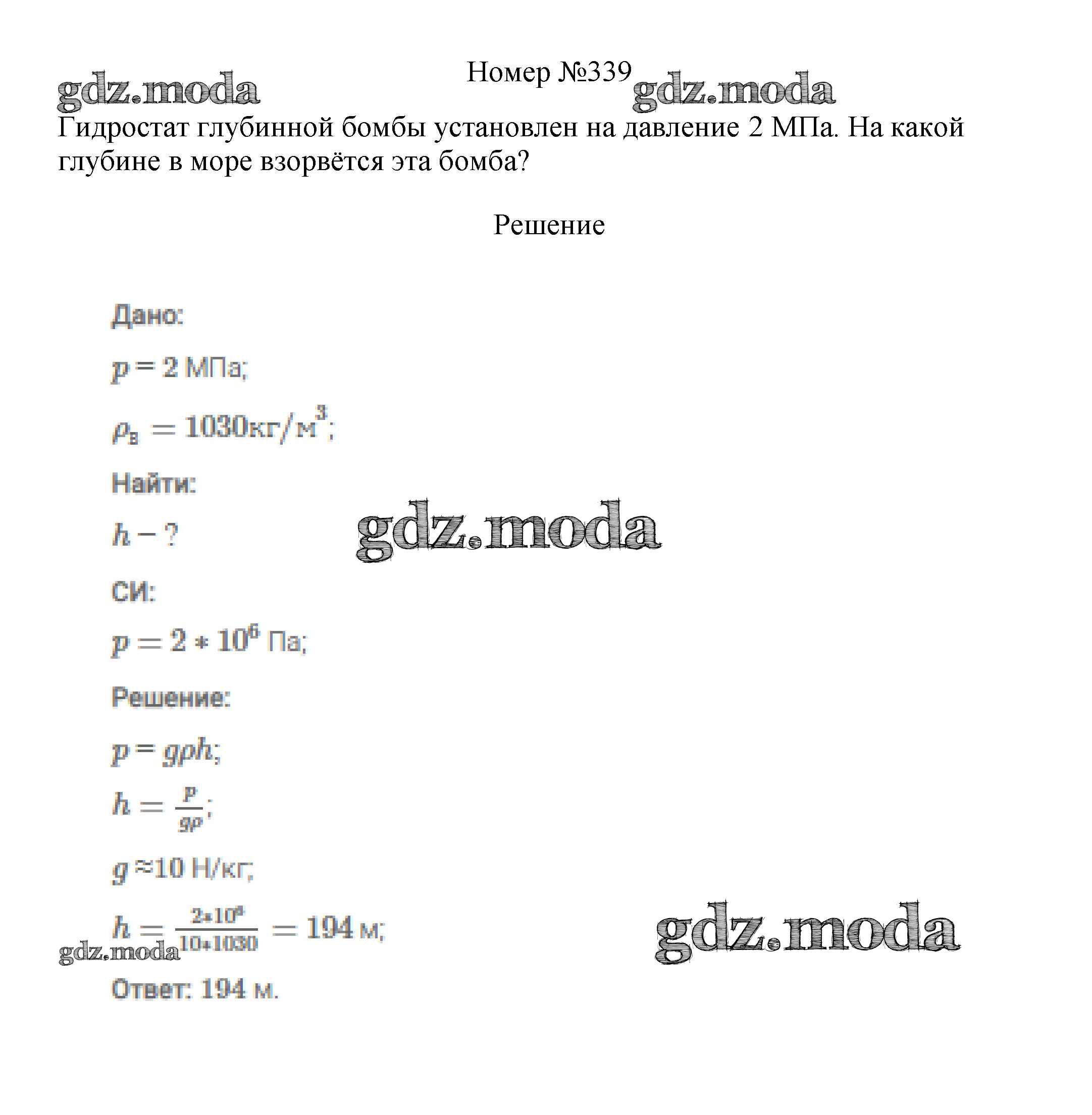 ОТВЕТ на задание № 339 Сборник вопросов и задач по Физике 7-9 класс Марон Вертикаль