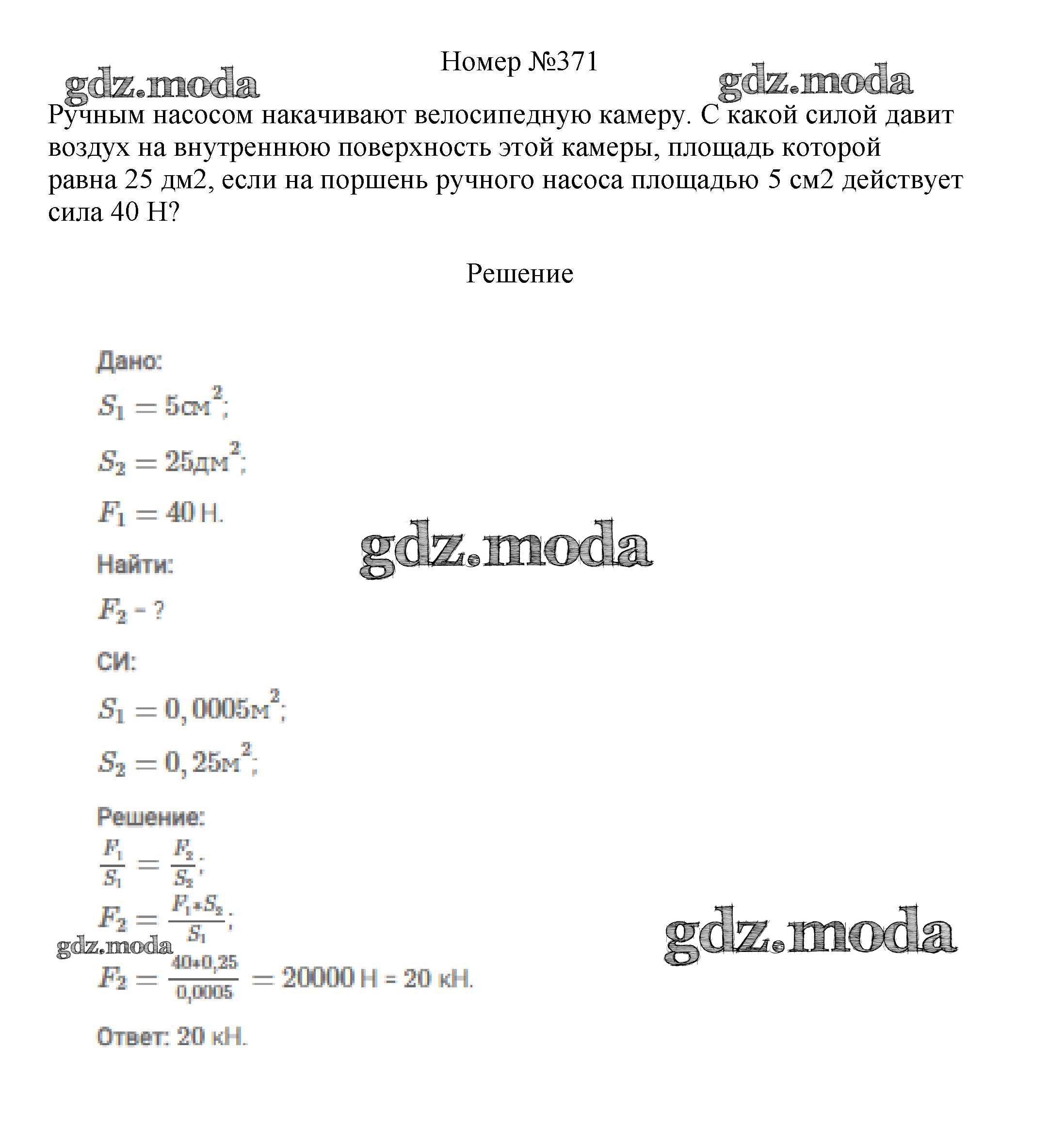 ОТВЕТ на задание № 371 Сборник вопросов и задач по Физике 7-9 класс Марон Вертикаль