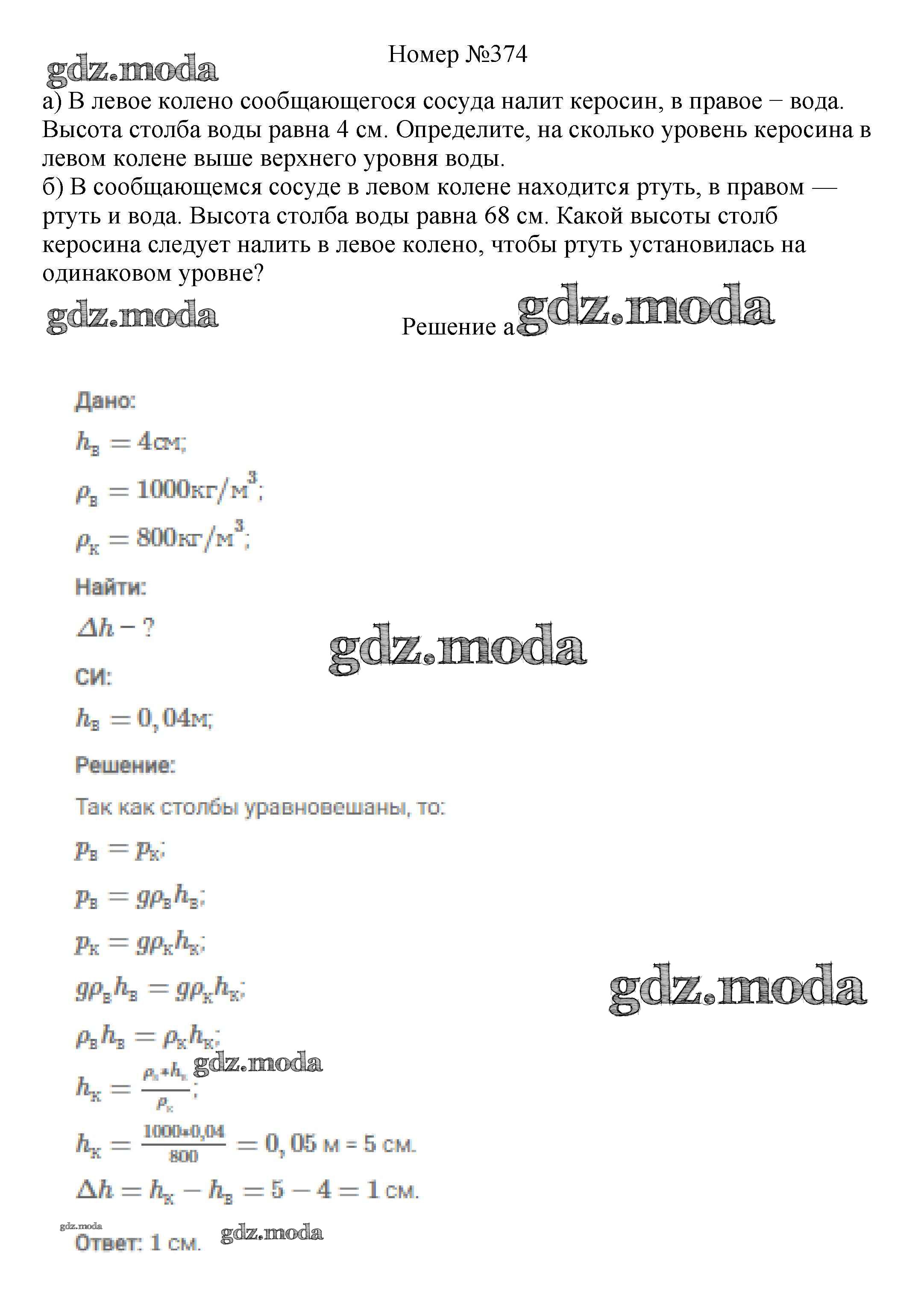 ОТВЕТ на задание № 374 Сборник вопросов и задач по Физике 7-9 класс Марон Вертикаль
