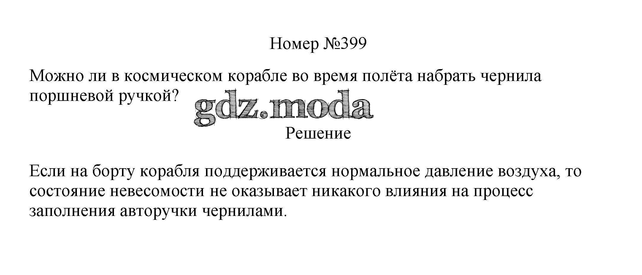 ГДЗ решение к заданию № 399 Физика 7-9 классы сборник вопросов и задач Марон А.Е. Дрофа 2013 ФГОС бесплатно на гдз.мода!