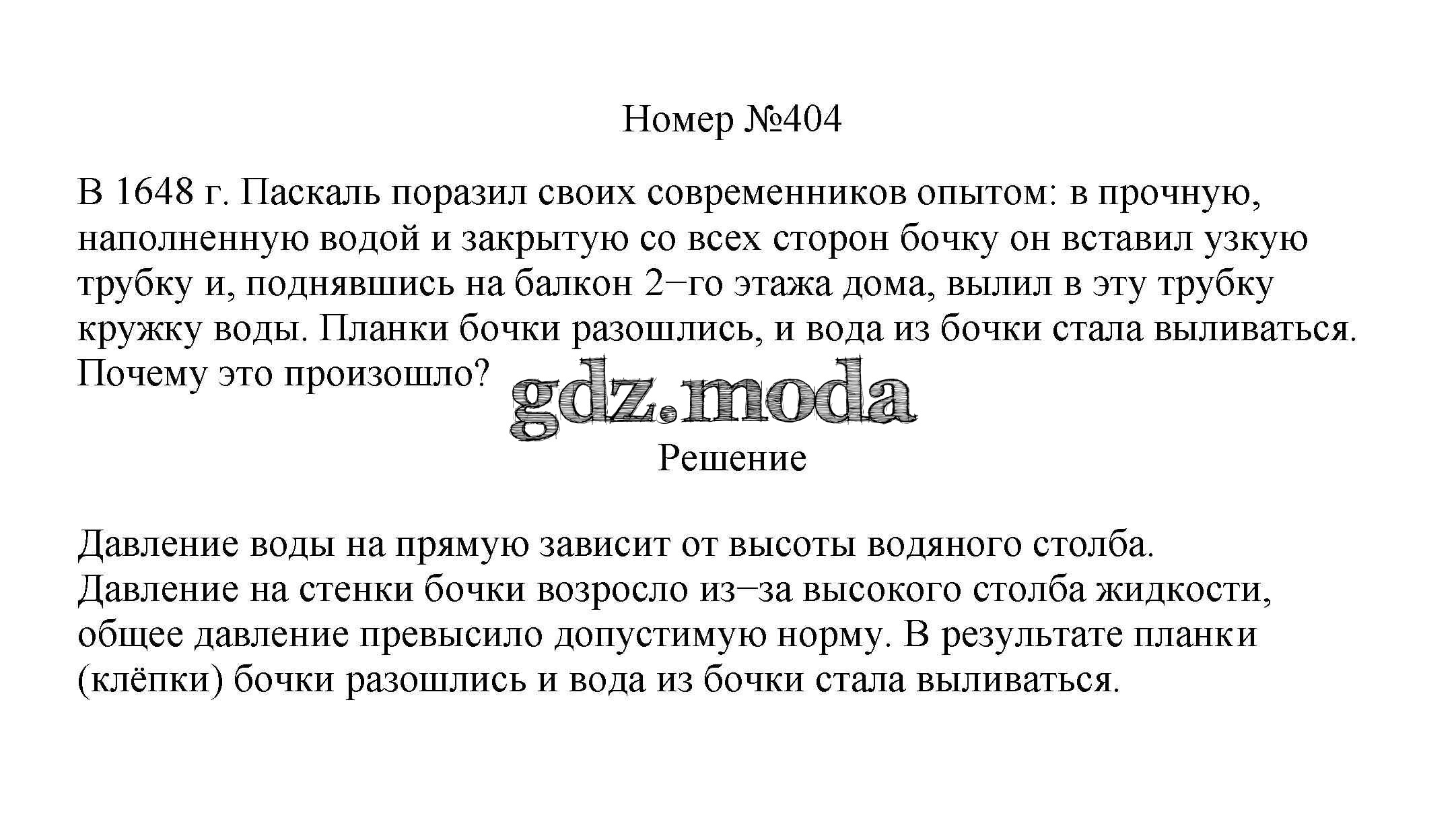 ОТВЕТ на задание № 404 Сборник вопросов и задач по Физике 7-9 класс Марон Вертикаль