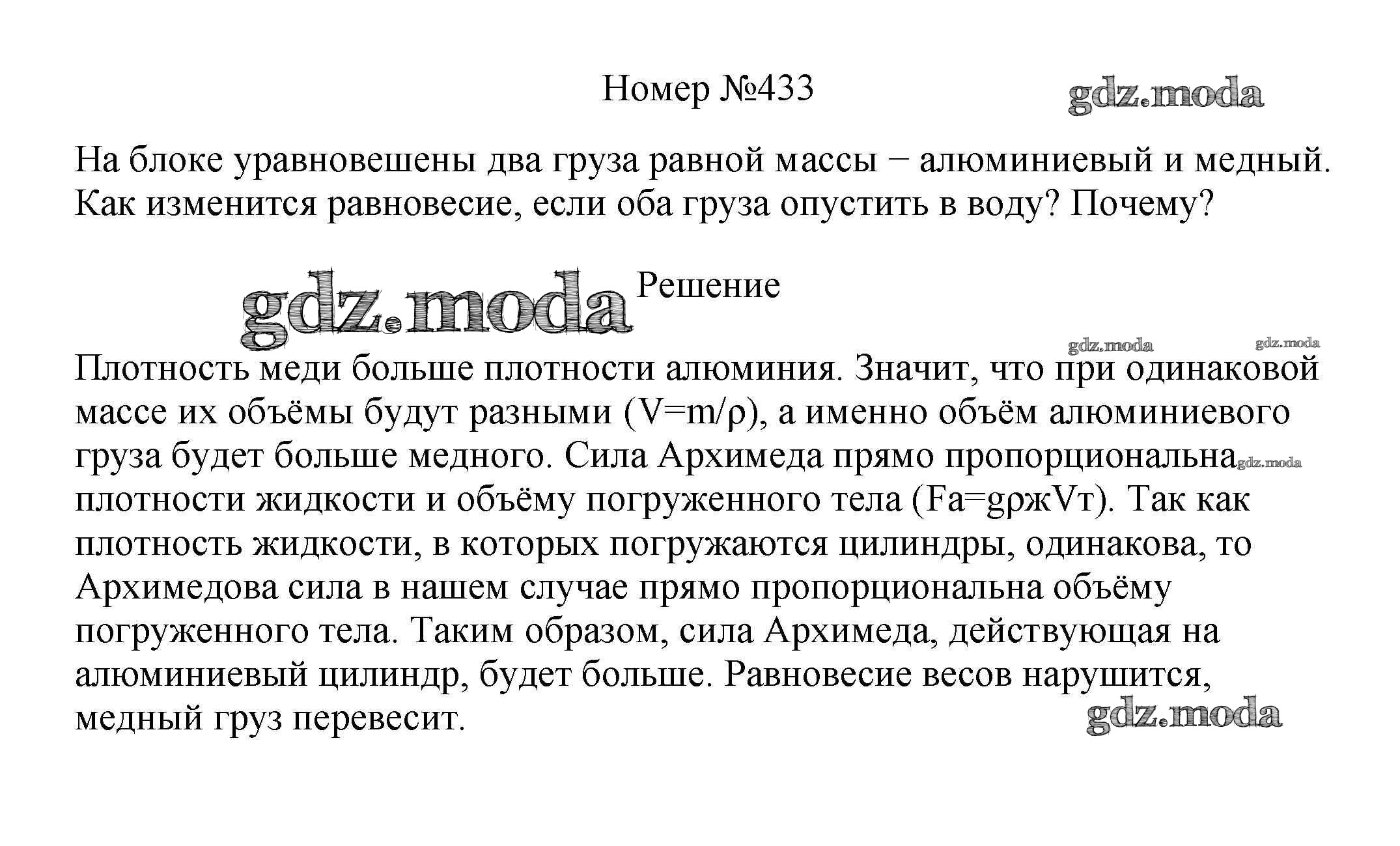 ОТВЕТ на задание № 433 Сборник вопросов и задач по Физике 7-9 класс Марон Вертикаль