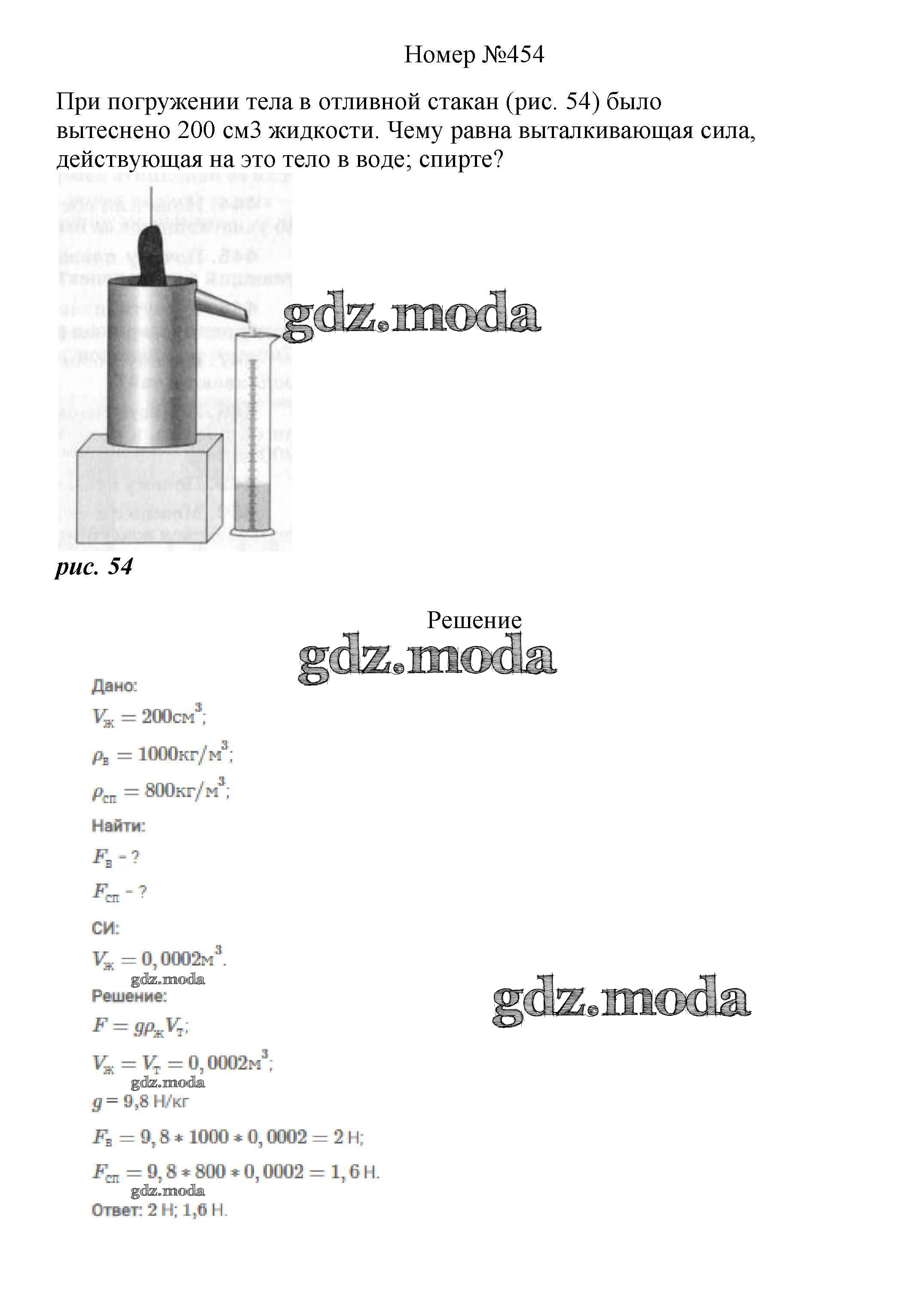 ОТВЕТ на задание № 454 Сборник вопросов и задач по Физике 7-9 класс Марон Вертикаль