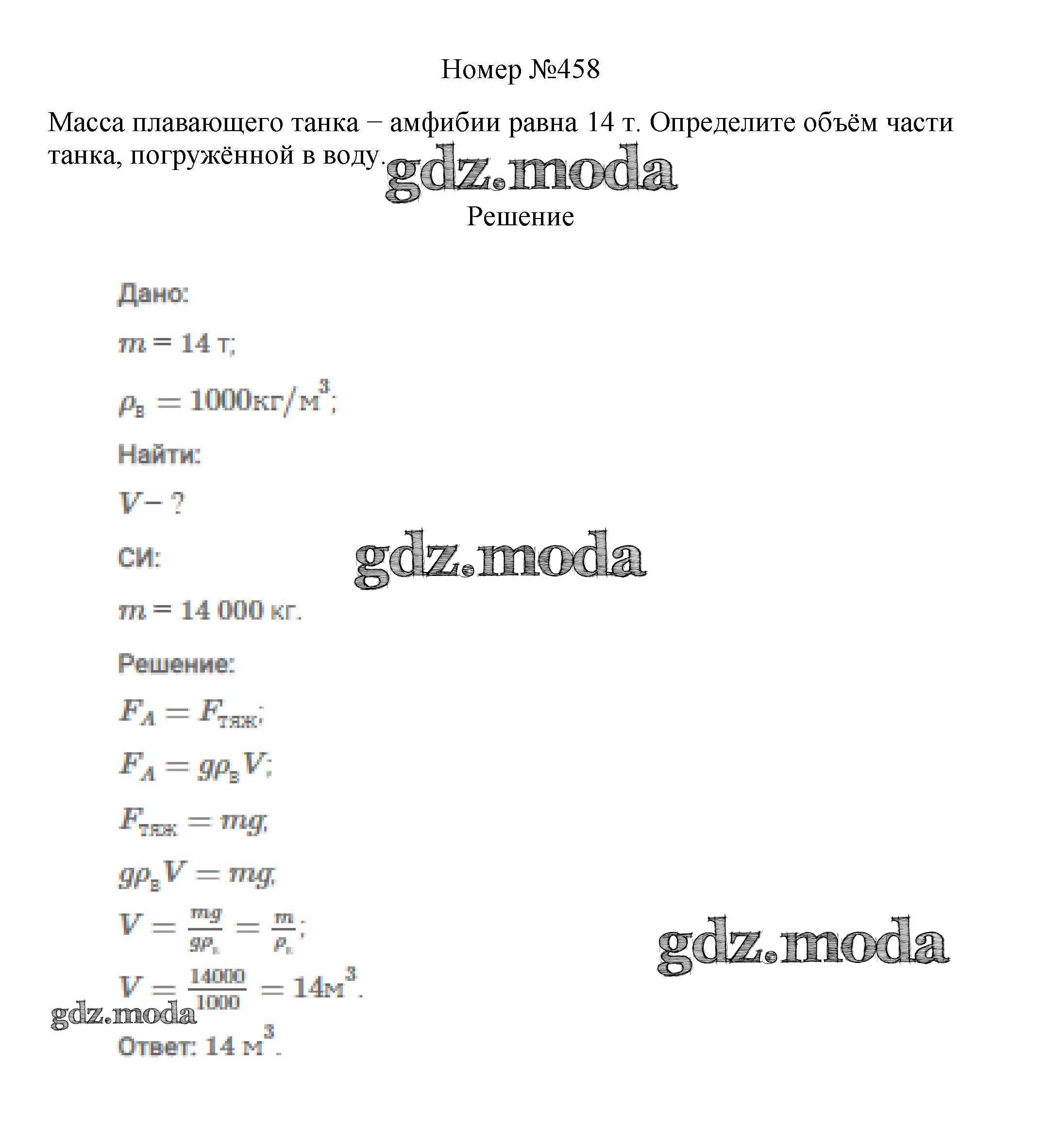 ОТВЕТ на задание № 458 Сборник вопросов и задач по Физике 7-9 класс Марон Вертикаль