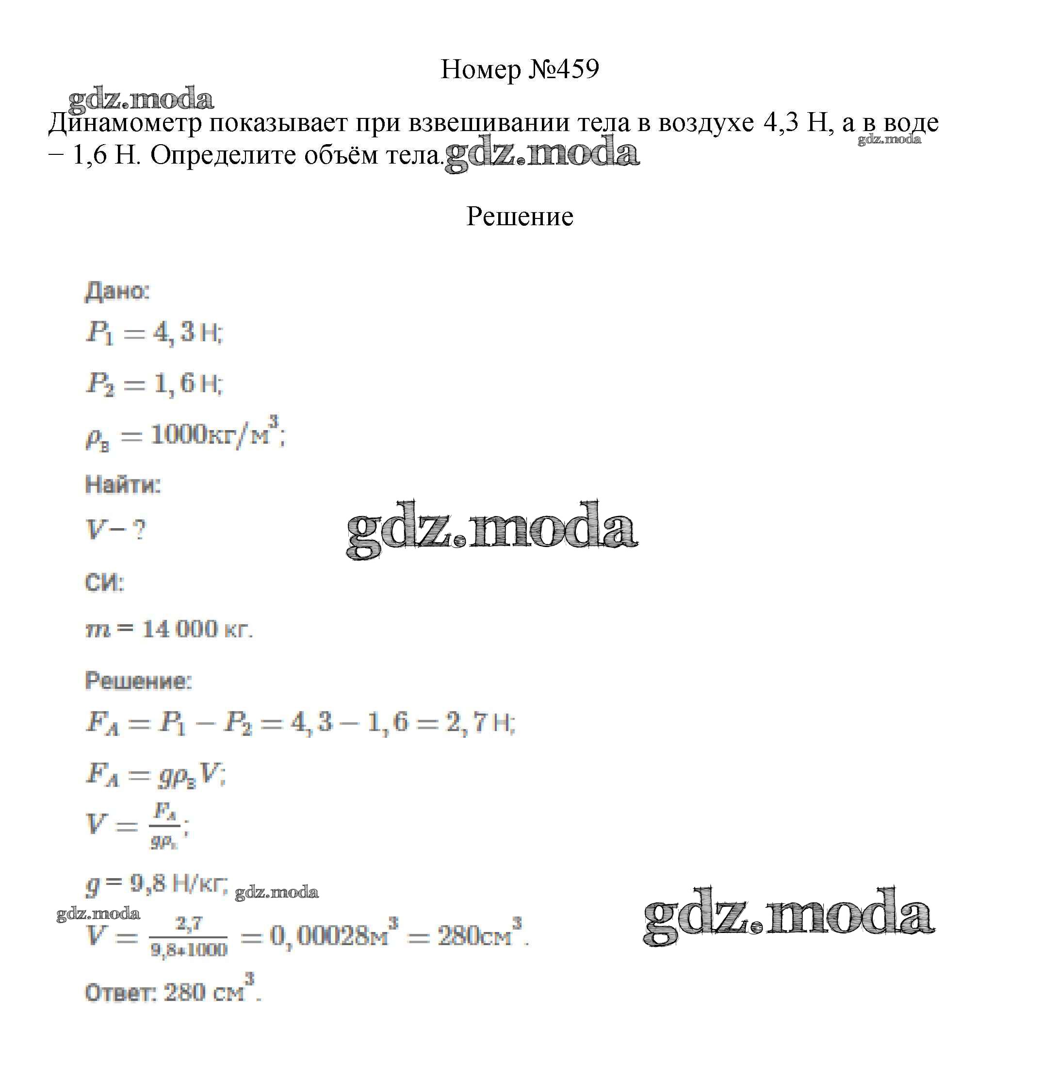ОТВЕТ на задание № 459 Сборник вопросов и задач по Физике 7-9 класс Марон Вертикаль