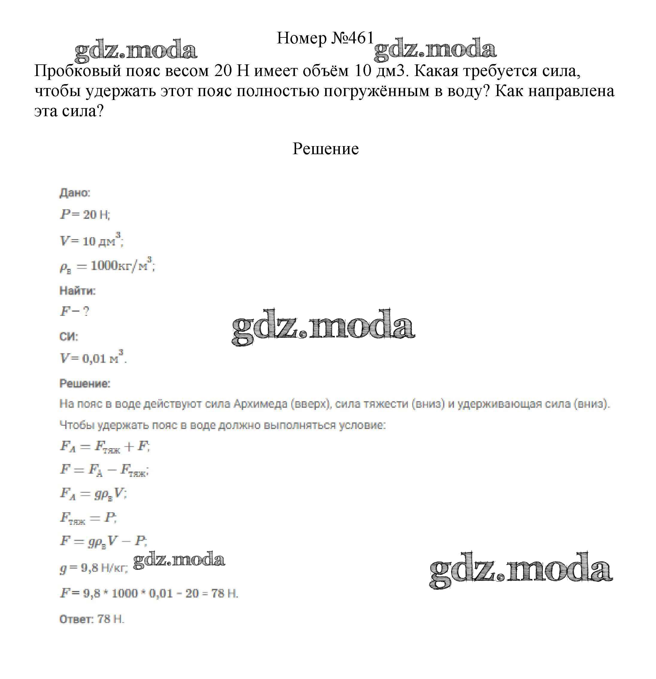 ОТВЕТ на задание № 461 Сборник вопросов и задач по Физике 7-9 класс Марон Вертикаль