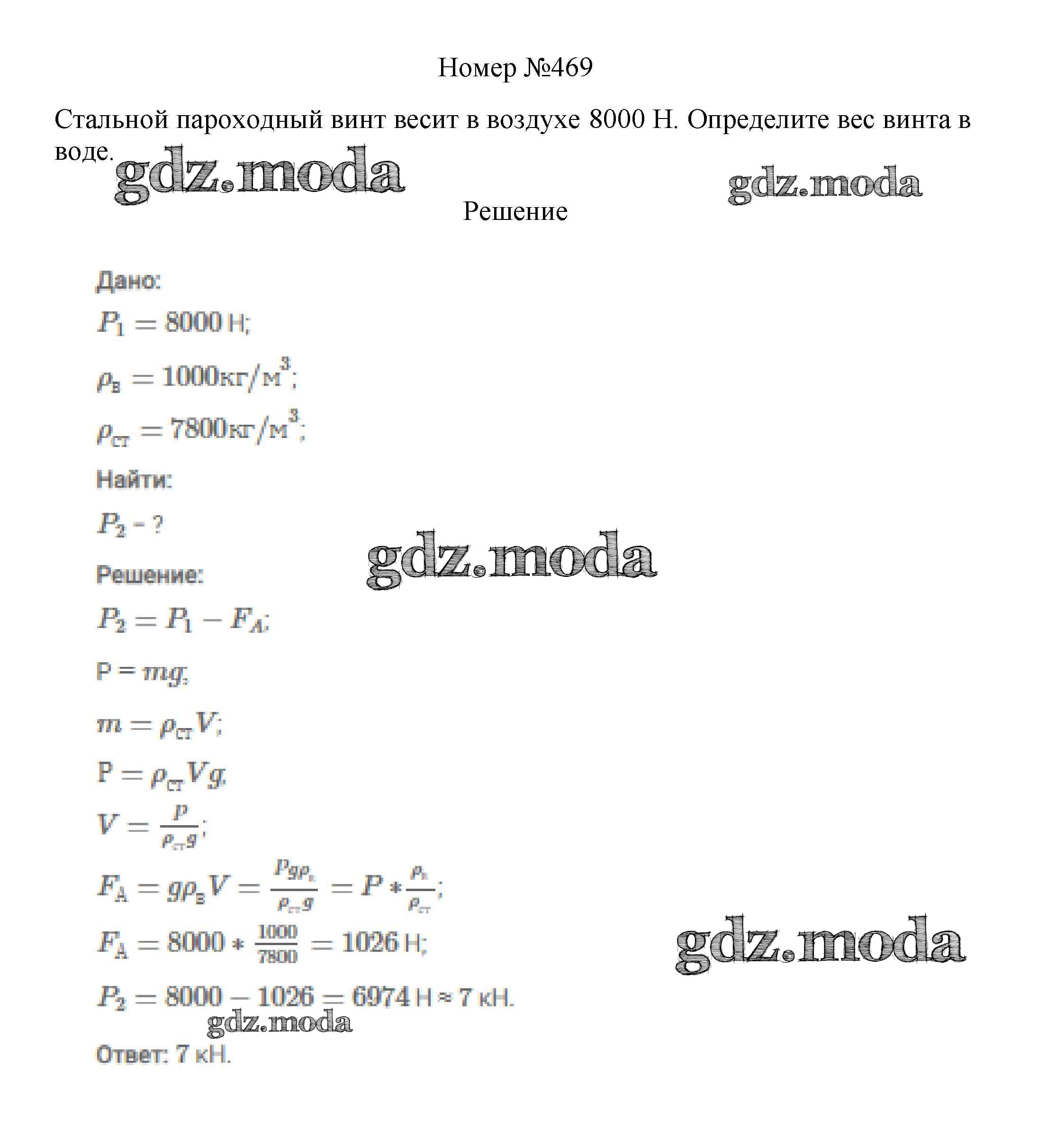 ОТВЕТ на задание № 469 Сборник вопросов и задач по Физике 7-9 класс Марон Вертикаль