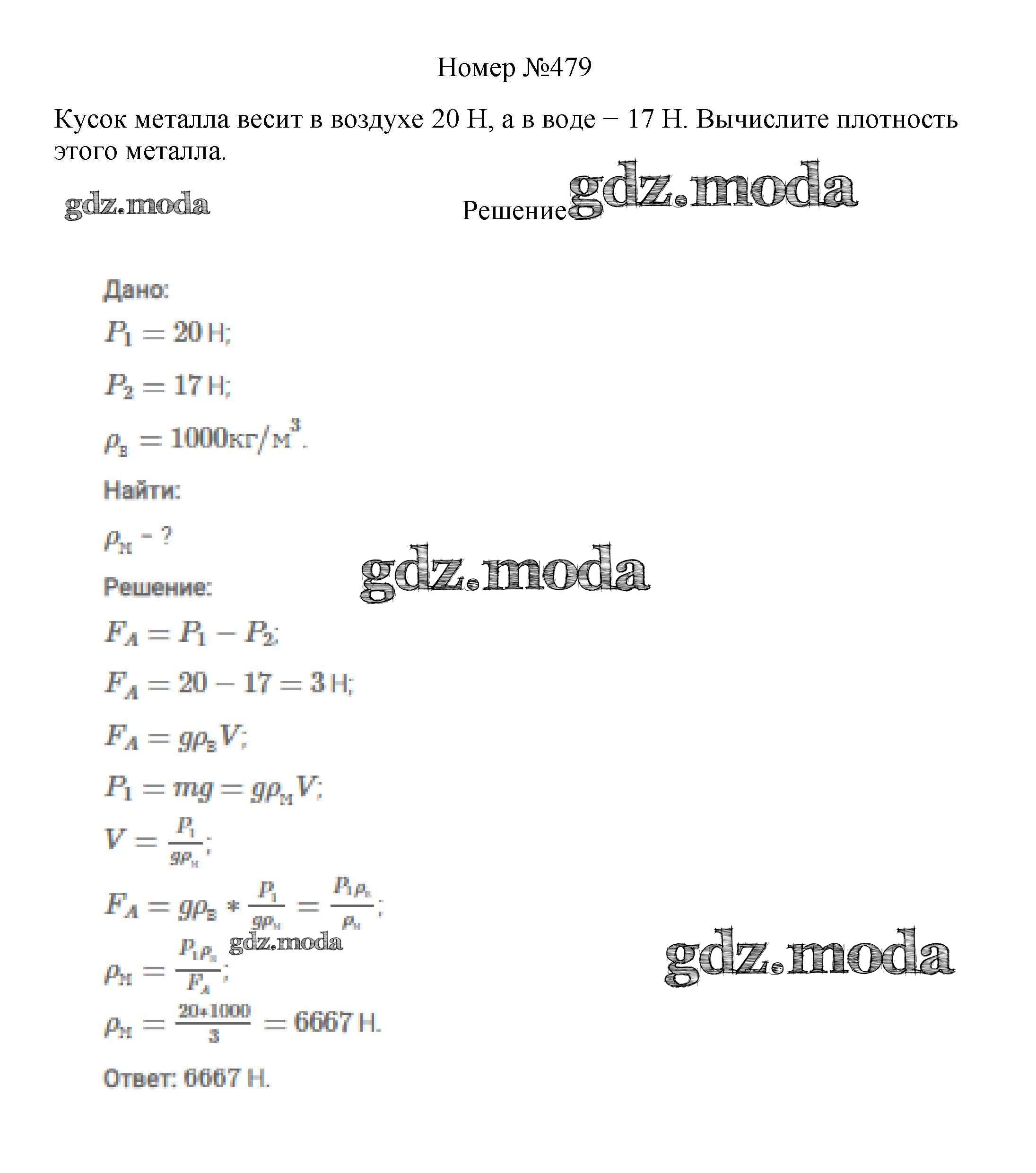 ОТВЕТ на задание № 479 Сборник вопросов и задач по Физике 7-9 класс Марон Вертикаль
