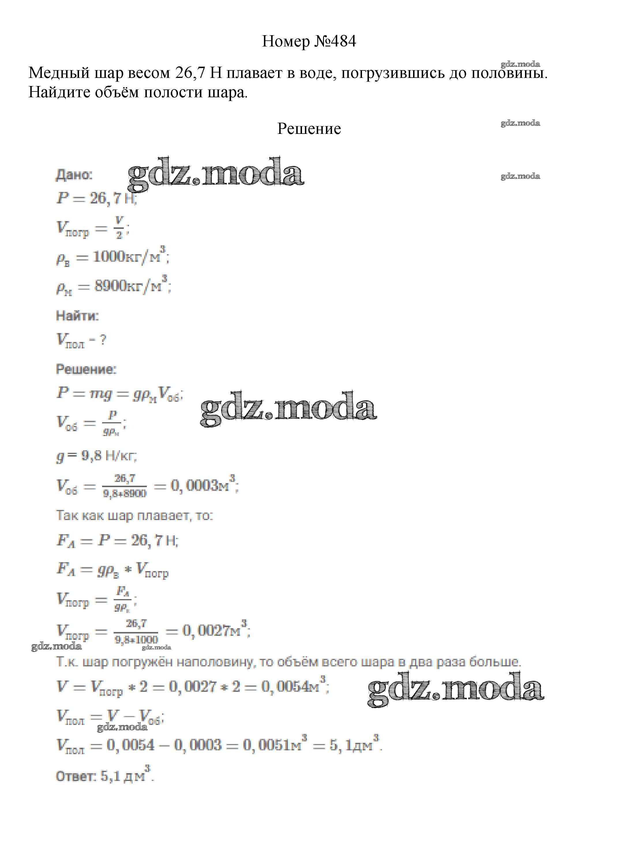 ОТВЕТ на задание № 484 Сборник вопросов и задач по Физике 7-9 класс Марон Вертикаль