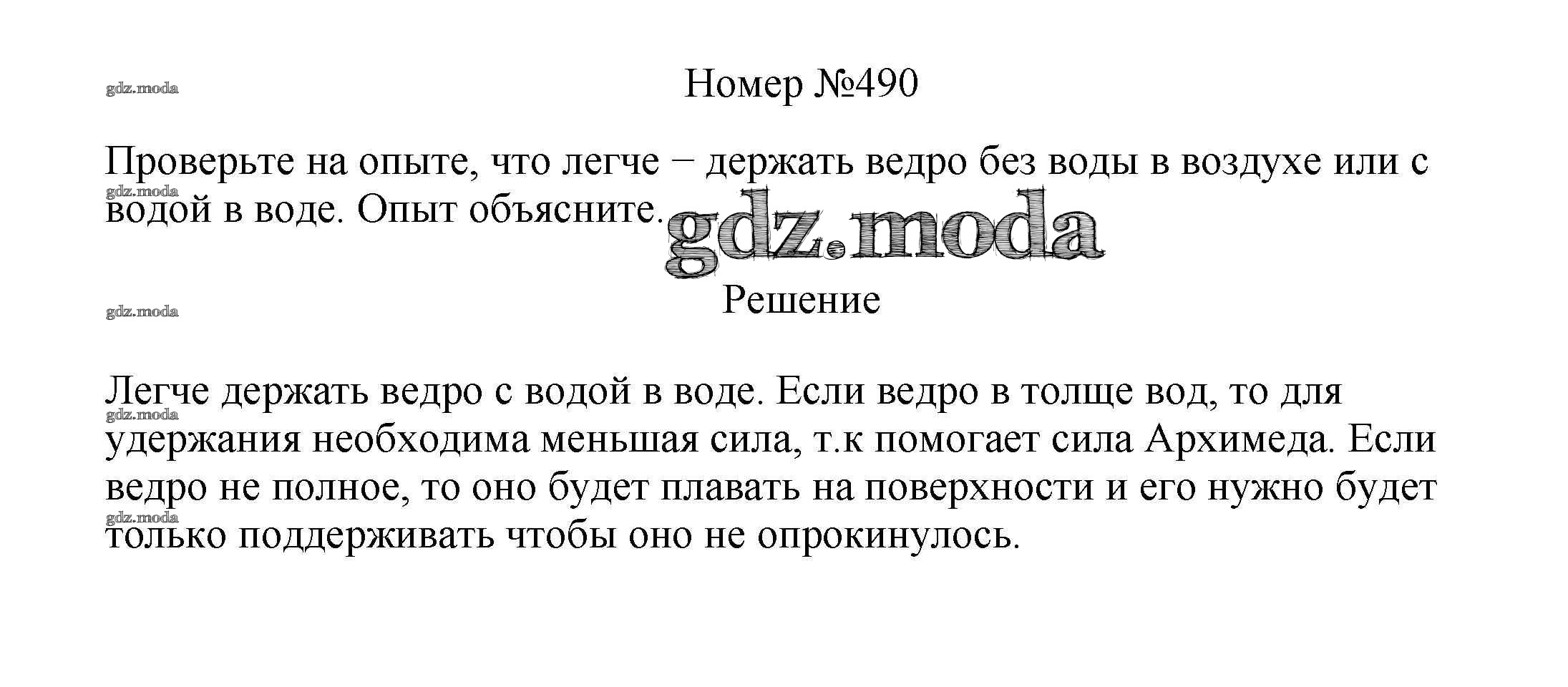 ОТВЕТ на задание № 490 Сборник вопросов и задач по Физике 7-9 класс Марон Вертикаль
