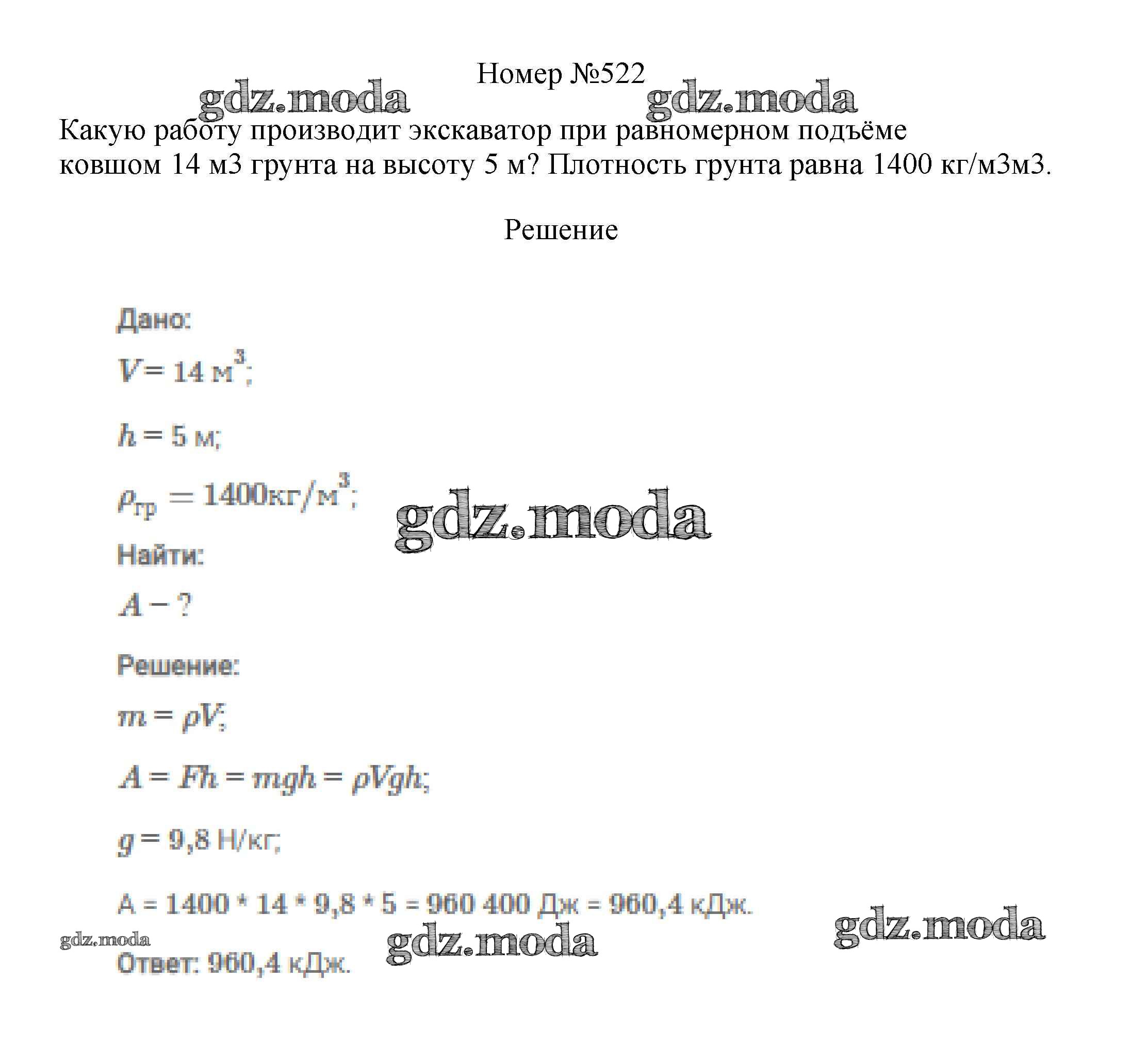 ОТВЕТ на задание № 522 Сборник вопросов и задач по Физике 7-9 класс Марон Вертикаль