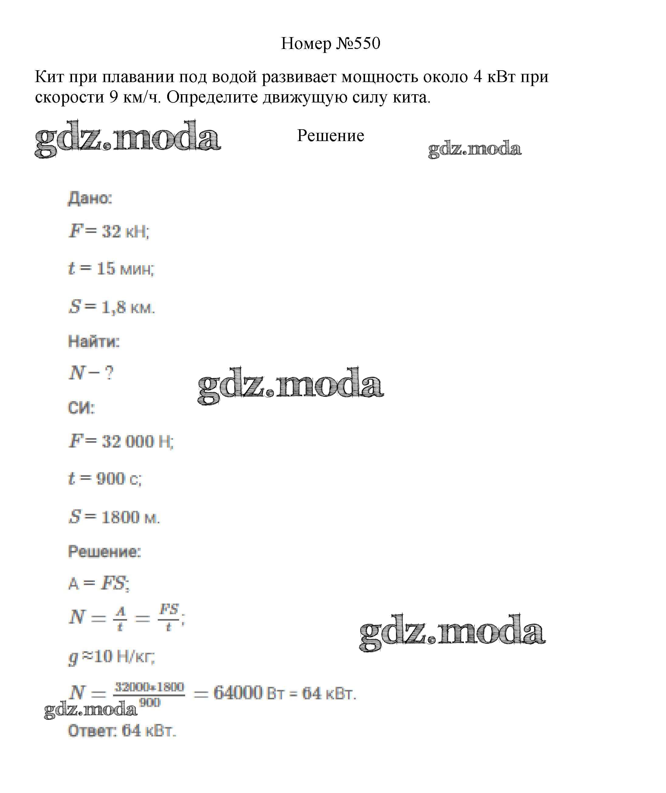 ОТВЕТ на задание № 550 Сборник вопросов и задач по Физике 7-9 класс Марон Вертикаль