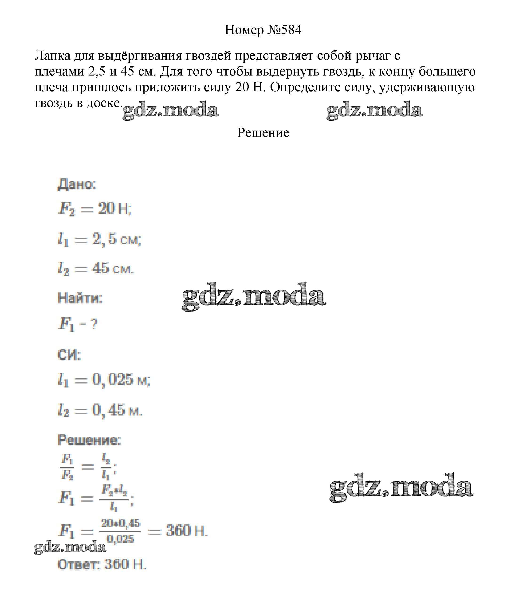 ОТВЕТ на задание № 584 Сборник вопросов и задач по Физике 7-9 класс Марон Вертикаль
