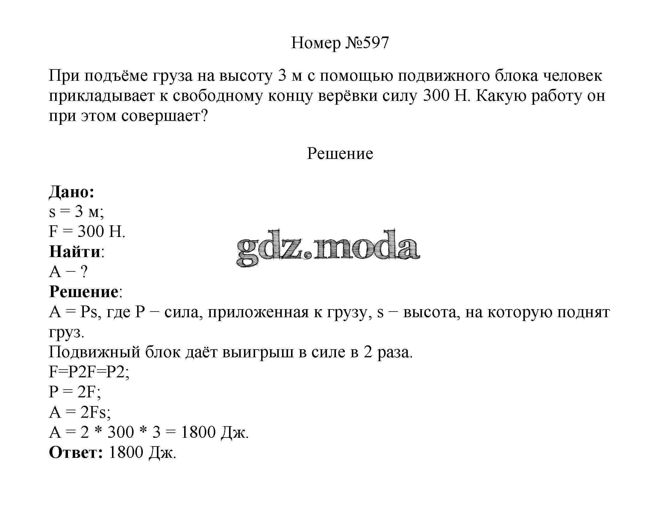 ОТВЕТ на задание № 597 Сборник вопросов и задач по Физике 7-9 класс Марон Вертикаль