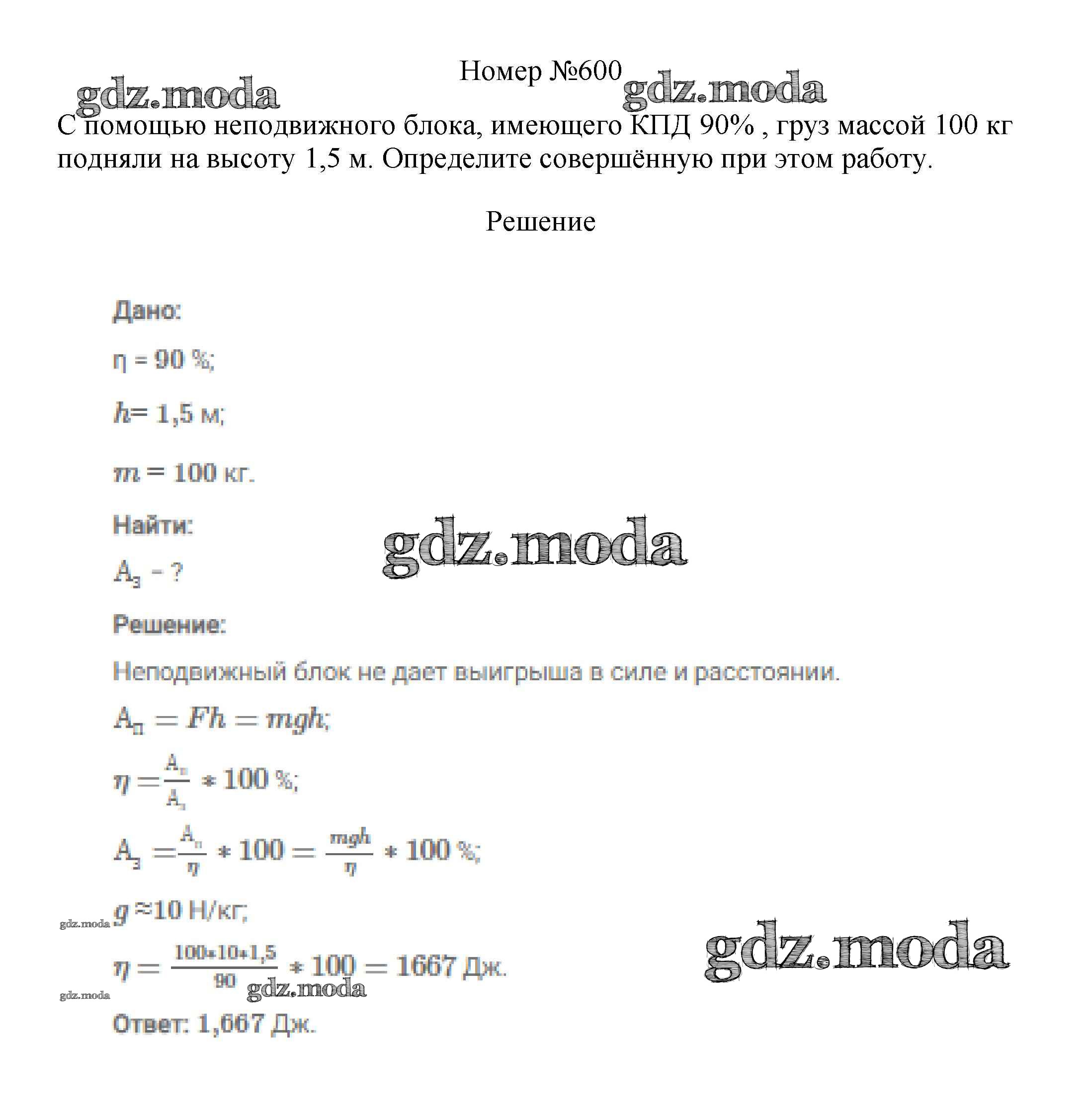 ГДЗ решение к заданию № 600 Физика 7-9 классы сборник вопросов и задач Марон А.Е. Дрофа 2013 ФГОС бесплатно на гдз.мода!