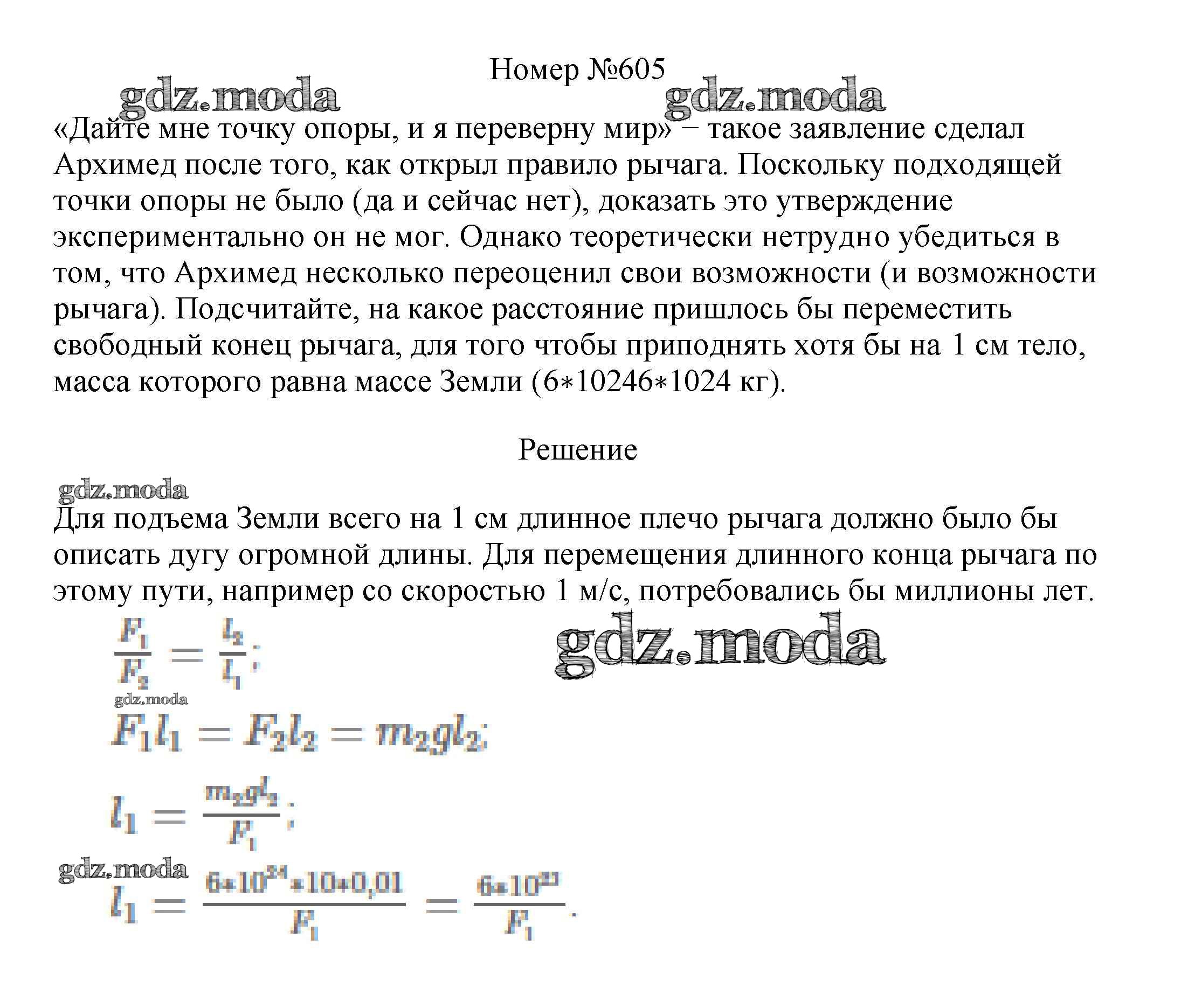 ОТВЕТ на задание № 605 Сборник вопросов и задач по Физике 7-9 класс Марон Вертикаль