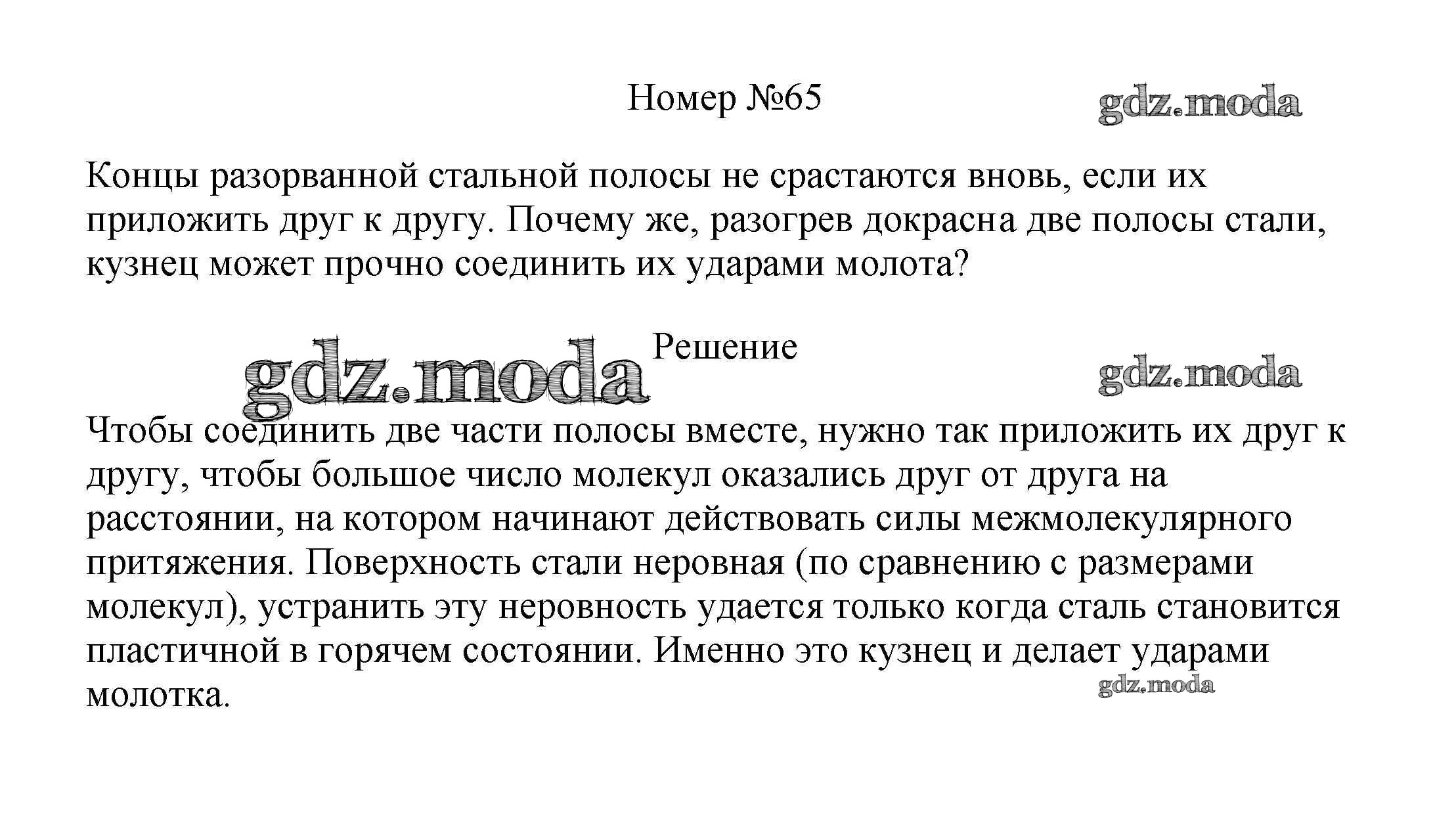 ГДЗ решение к заданию № 65 Физика 7-9 классы сборник вопросов и задач Марон А.Е. Дрофа 2013 ФГОС бесплатно на гдз.мода!