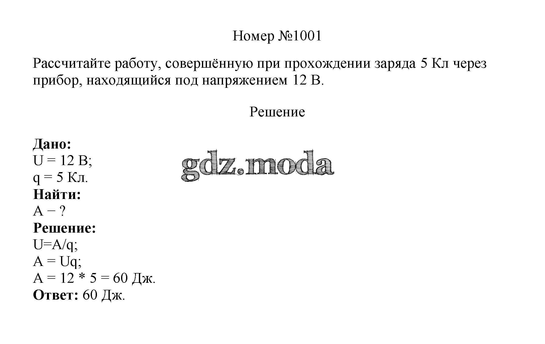 ГДЗ решение к заданию № 1001 Физика 7-9 классы сборник вопросов и задач Марон А.Е. Дрофа 2013 ФГОС бесплатно на гдз.мода!