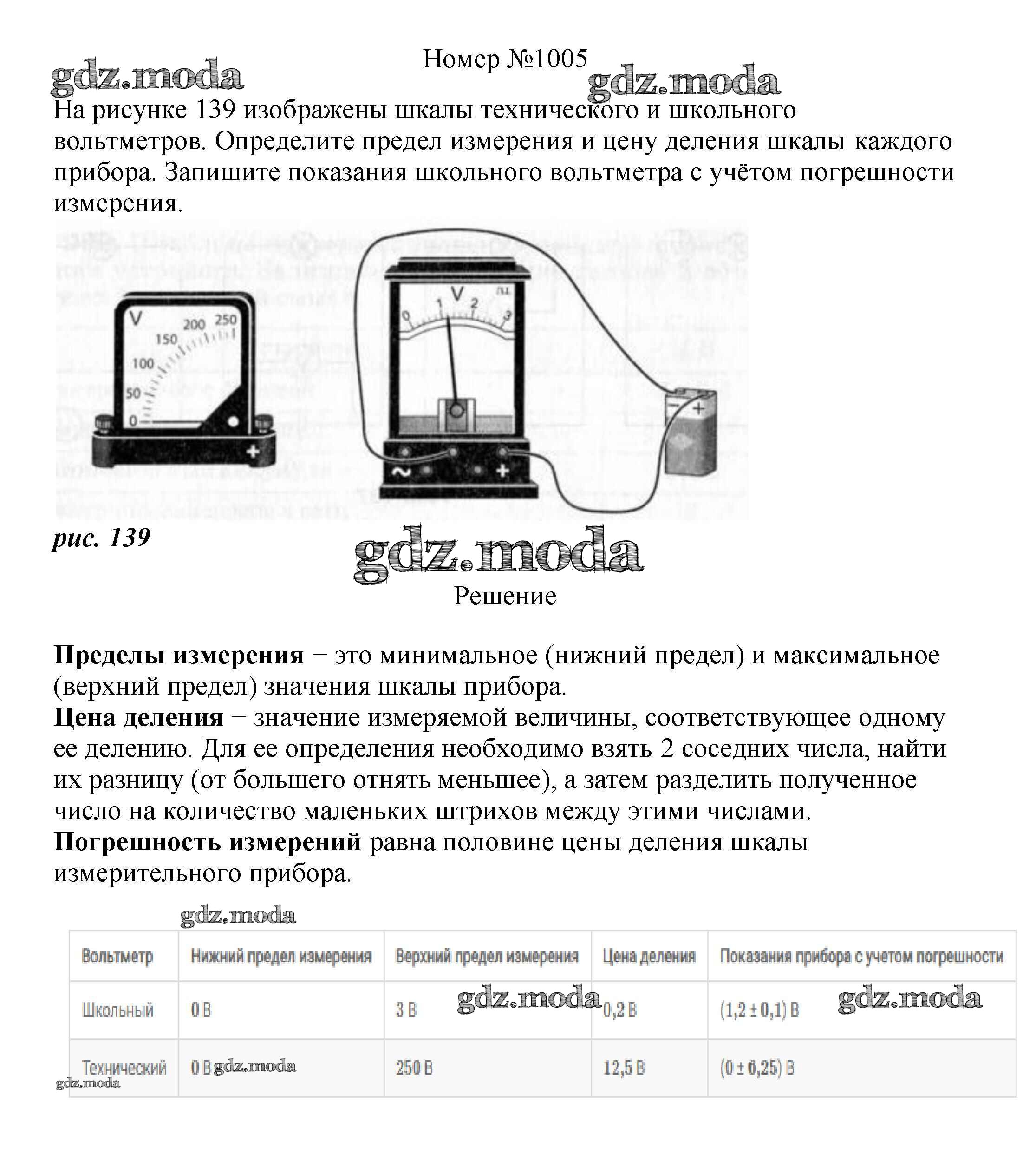 ГДЗ решение к заданию № 1005 Физика 7-9 классы сборник вопросов и задач Марон А.Е. Дрофа 2013 ФГОС бесплатно на гдз.мода!