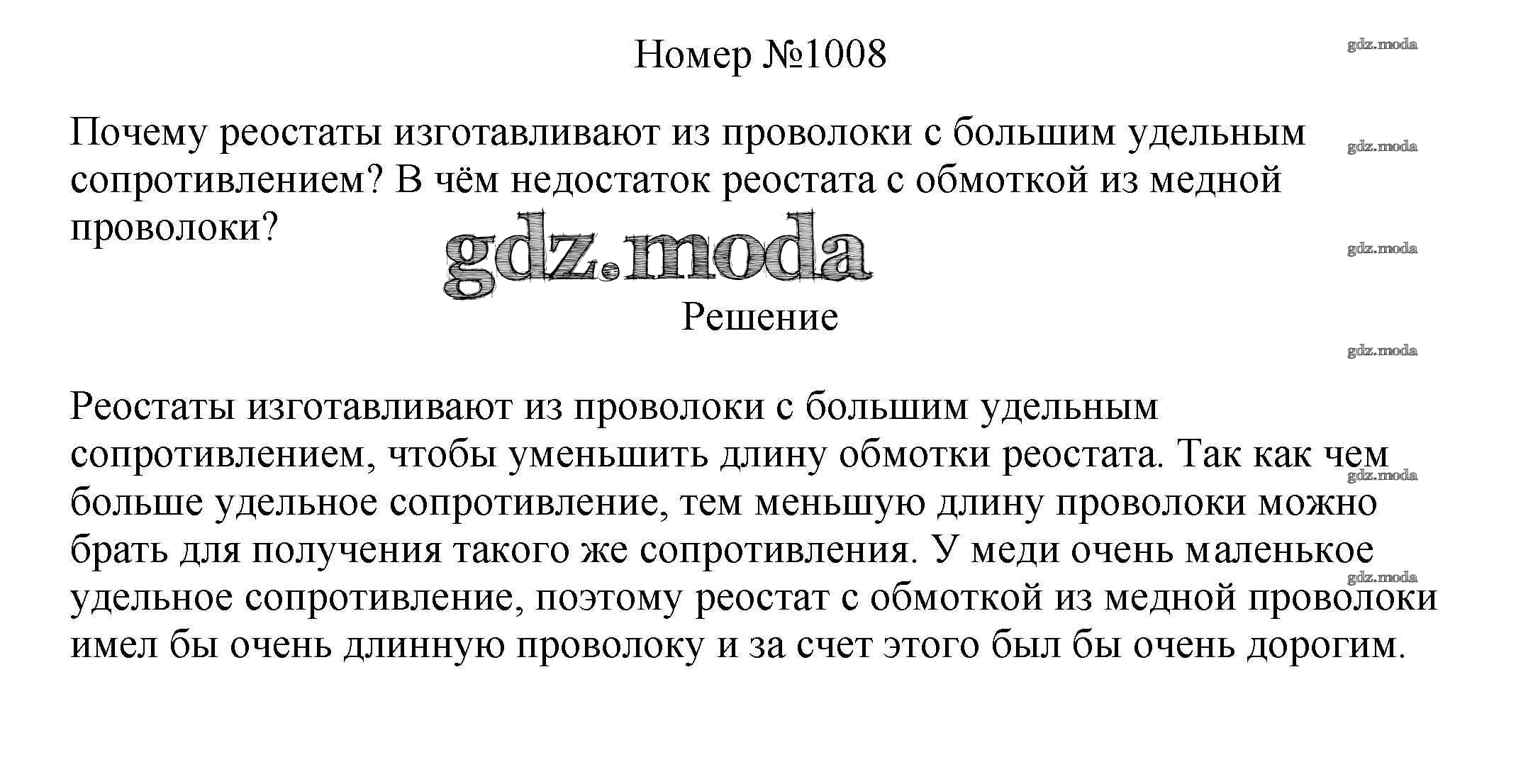 ГДЗ решение к заданию № 1008 Физика 7-9 классы сборник вопросов и задач Марон А.Е. Дрофа 2013 ФГОС бесплатно на гдз.мода!