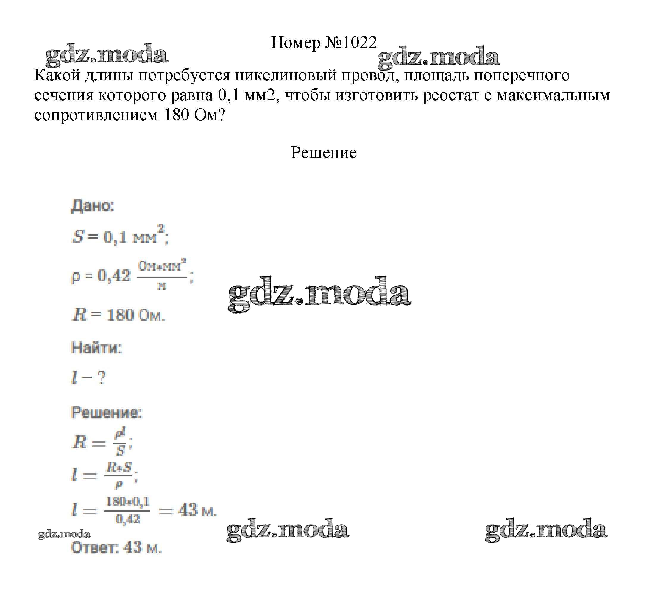 ГДЗ решение к заданию № 1022 Физика 7-9 классы сборник вопросов и задач Марон А.Е. Дрофа 2013 ФГОС бесплатно на гдз.мода!