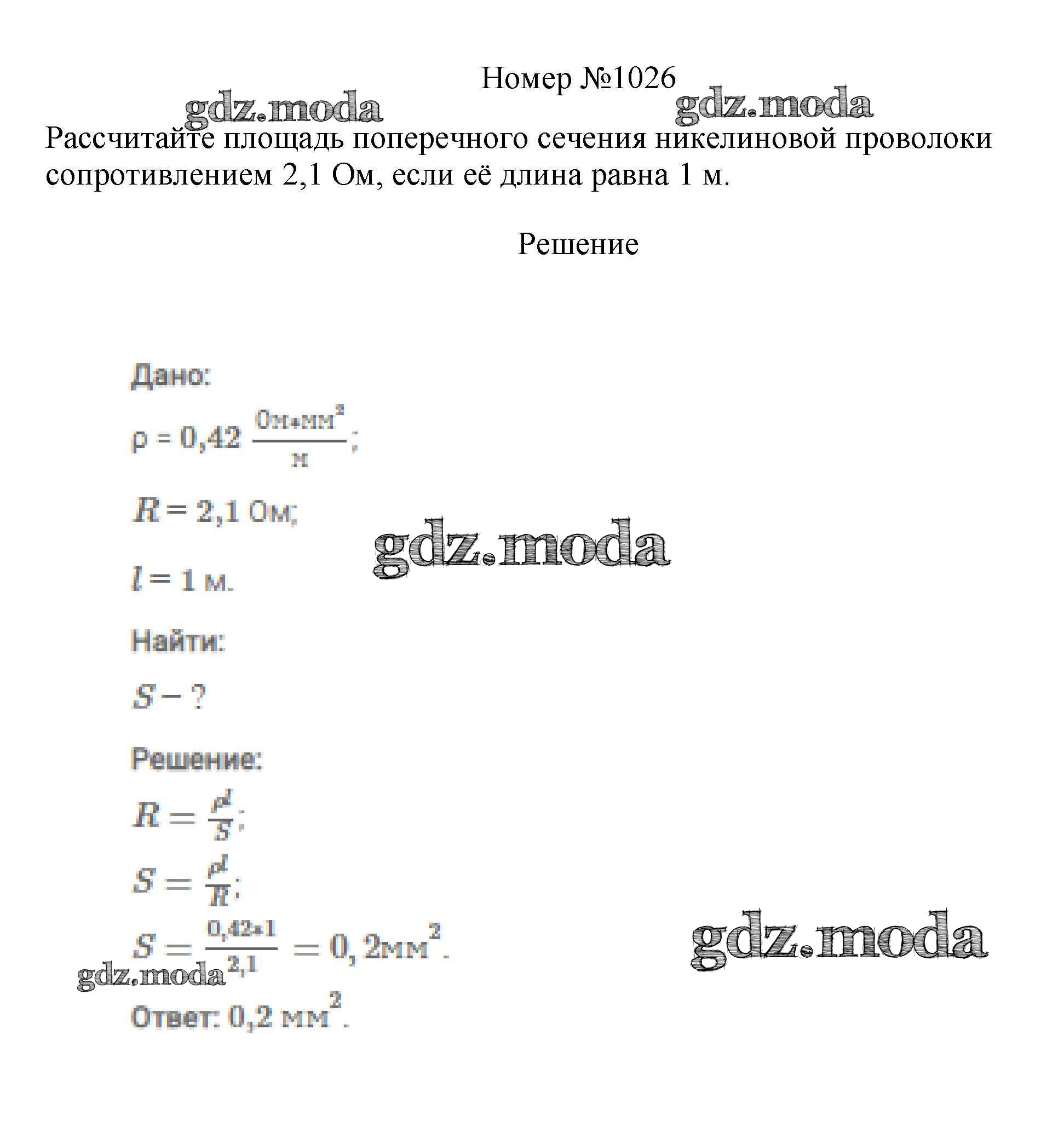 ОТВЕТ на задание № 1026 Сборник вопросов и задач по Физике 7-9 класс Марон Вертикаль
