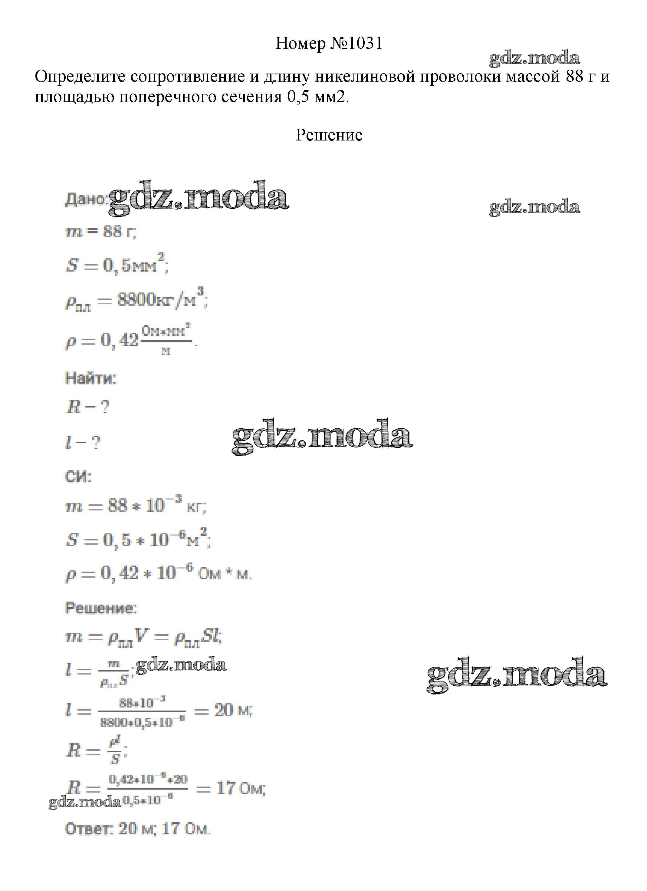 ГДЗ решение к заданию № 1031 Физика 7-9 классы сборник вопросов и задач Марон А.Е. Дрофа 2013 ФГОС бесплатно на гдз.мода!