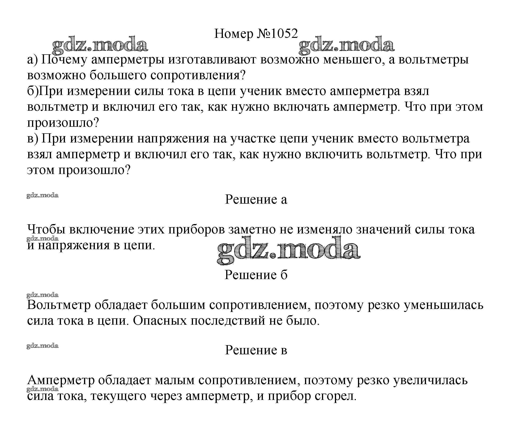 ГДЗ решение к заданию № 1052 Физика 7-9 классы сборник вопросов и задач Марон А.Е. Дрофа 2013 ФГОС бесплатно на гдз.мода!