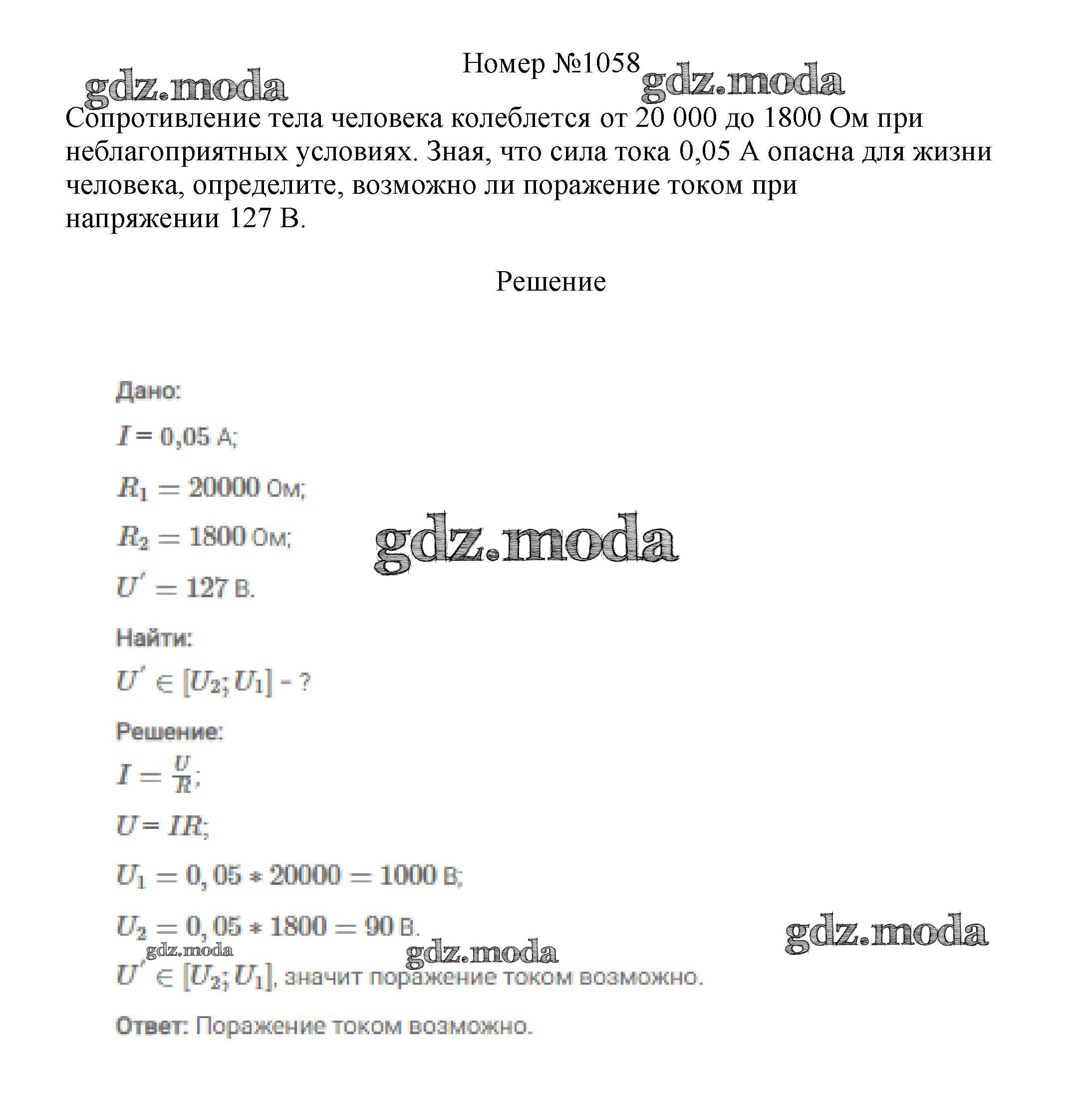 ГДЗ решение к заданию № 1058 Физика 7-9 классы сборник вопросов и задач Марон А.Е. Дрофа 2013 ФГОС бесплатно на гдз.мода!
