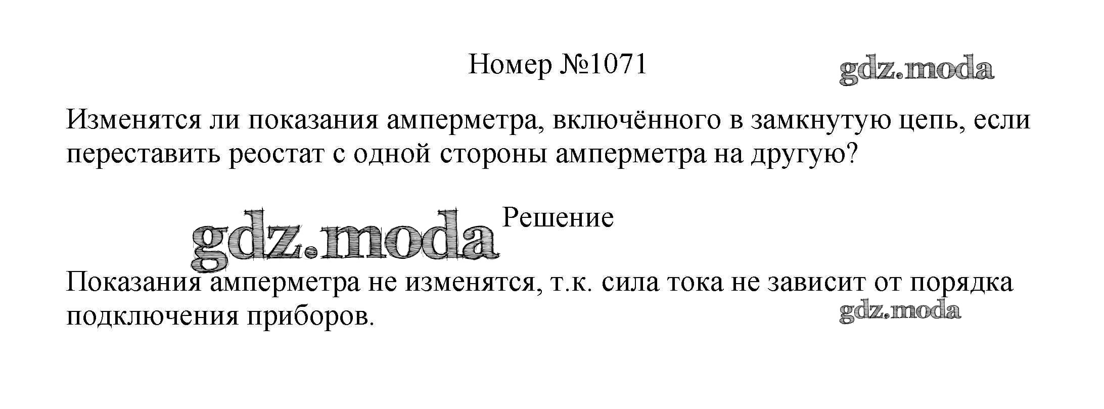 ГДЗ решение к заданию № 1071 Физика 7-9 классы сборник вопросов и задач Марон А.Е. Дрофа 2013 ФГОС бесплатно на гдз.мода!