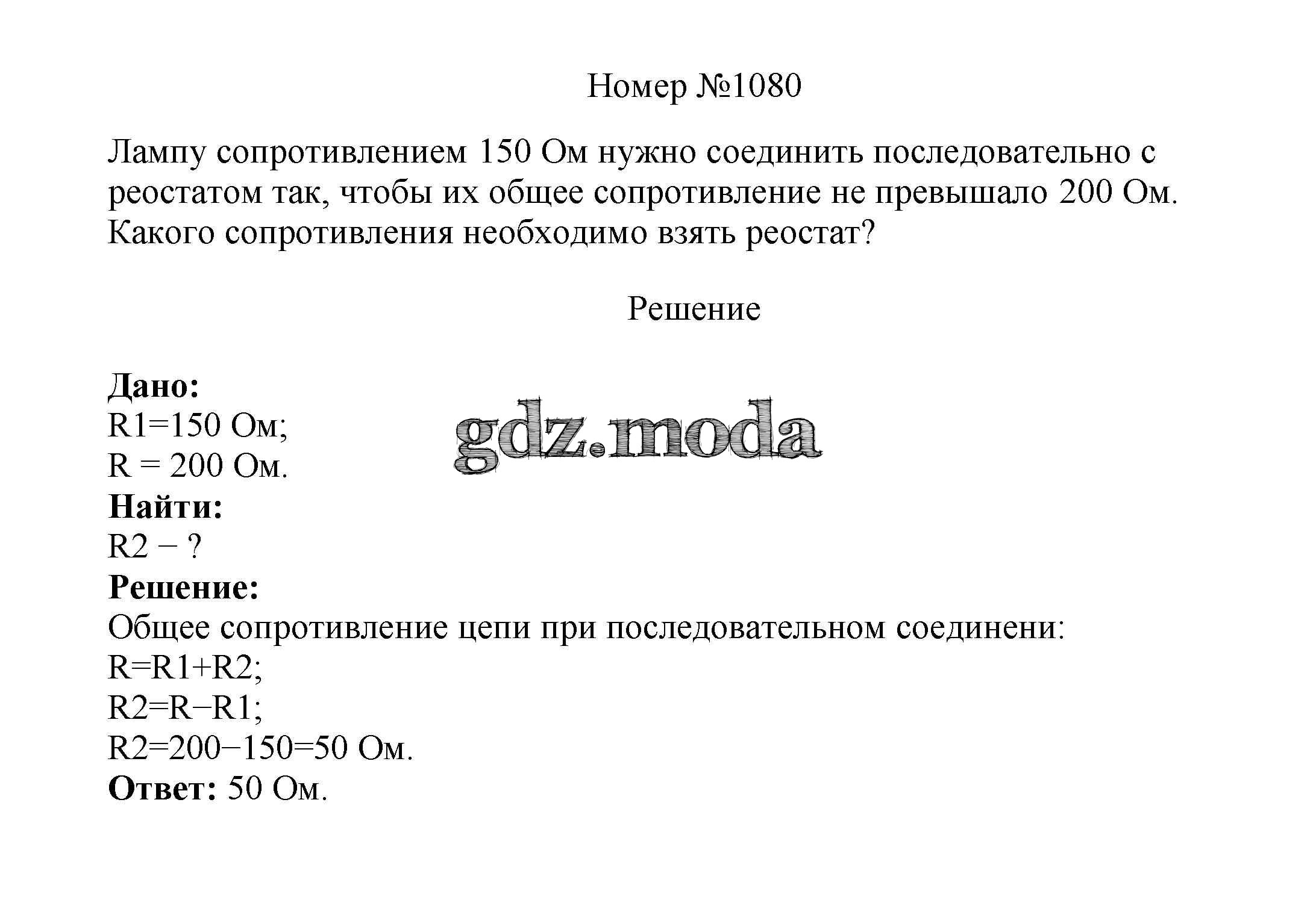 ГДЗ решение к заданию № 1080 Физика 7-9 классы сборник вопросов и задач Марон А.Е. Дрофа 2013 ФГОС бесплатно на гдз.мода!