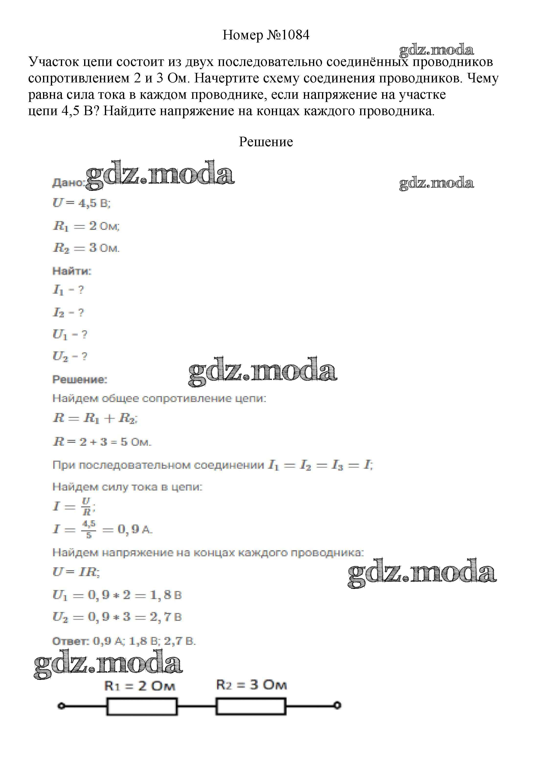 ОТВЕТ на задание № 1084 Сборник вопросов и задач по Физике 7-9 класс Марон Вертикаль