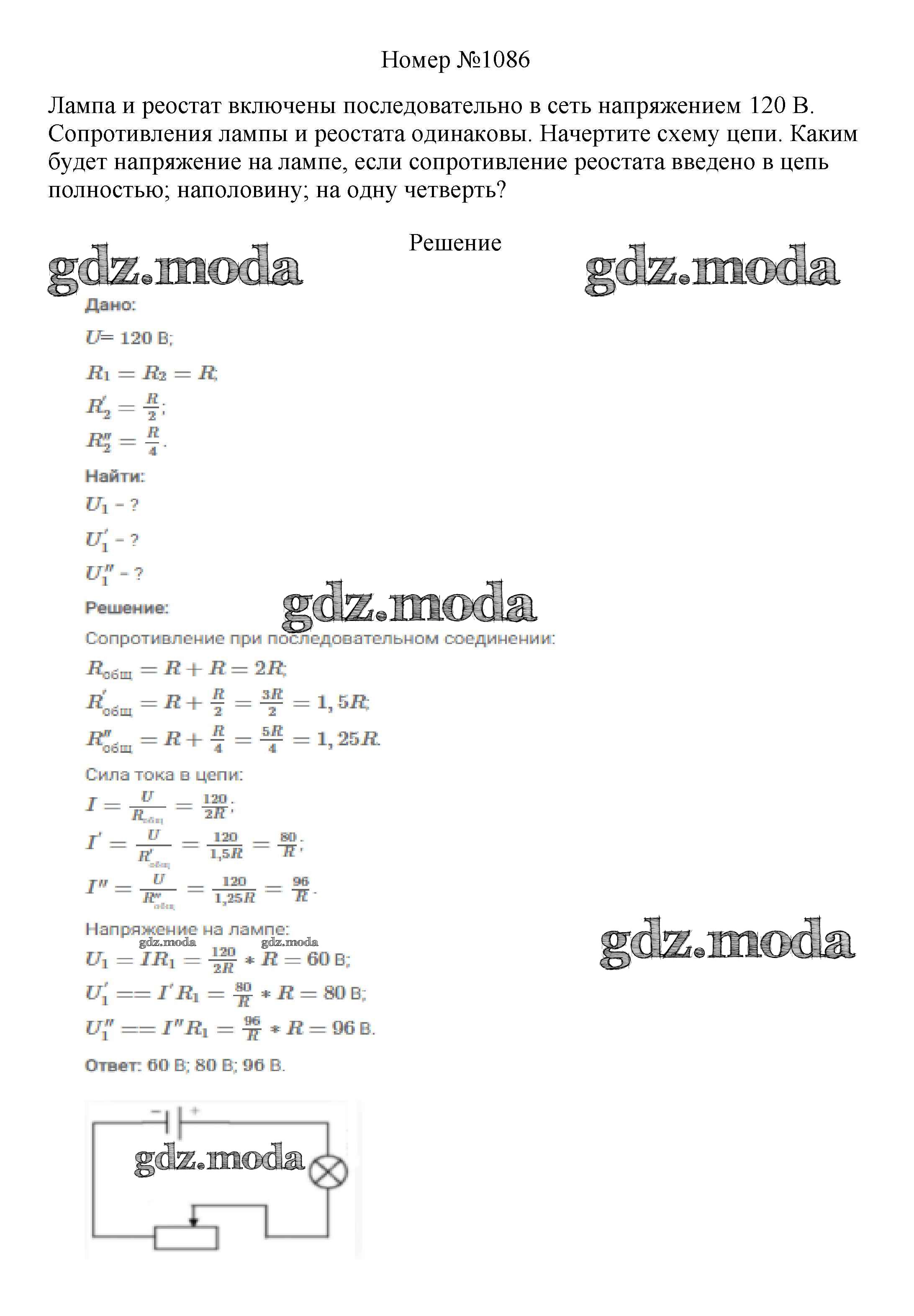 ГДЗ решение к заданию № 1086 Физика 7-9 классы сборник вопросов и задач Марон А.Е. Дрофа 2013 ФГОС бесплатно на гдз.мода!