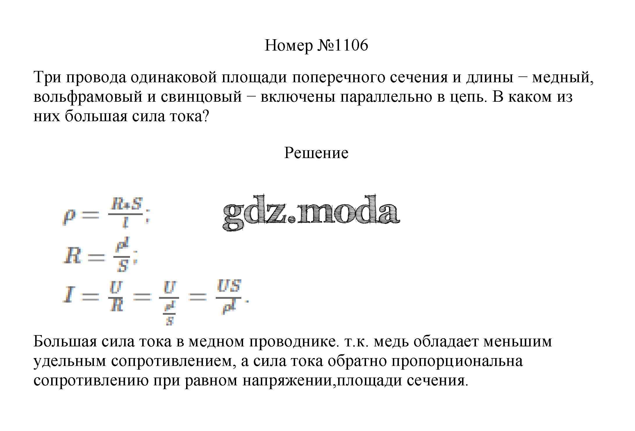 ГДЗ решение к заданию № 1106 Физика 7-9 классы сборник вопросов и задач Марон А.Е. Дрофа 2013 ФГОС бесплатно на гдз.мода!