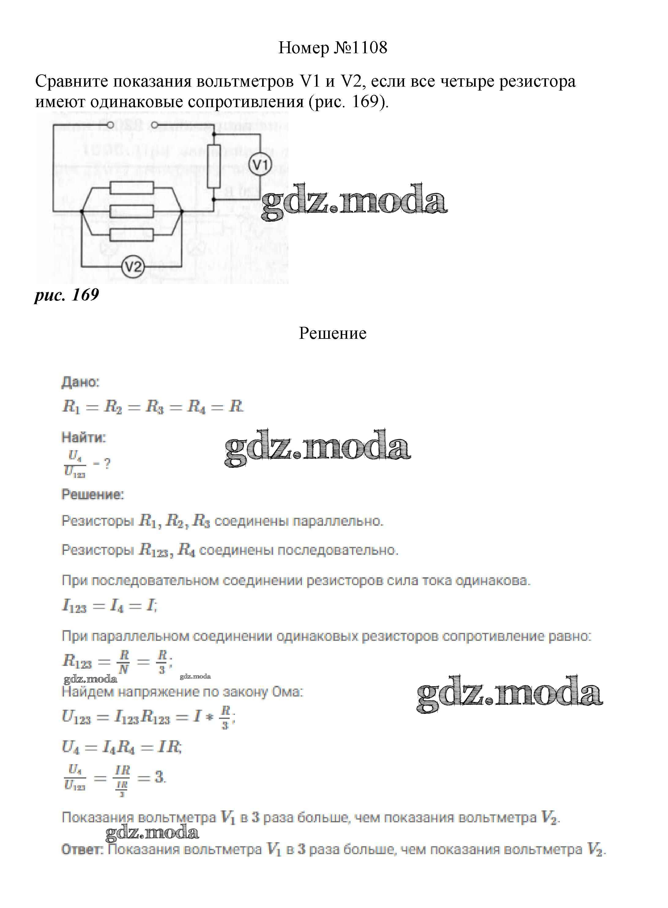 ГДЗ решение к заданию № 1108 Физика 7-9 классы сборник вопросов и задач Марон А.Е. Дрофа 2013 ФГОС бесплатно на гдз.мода!