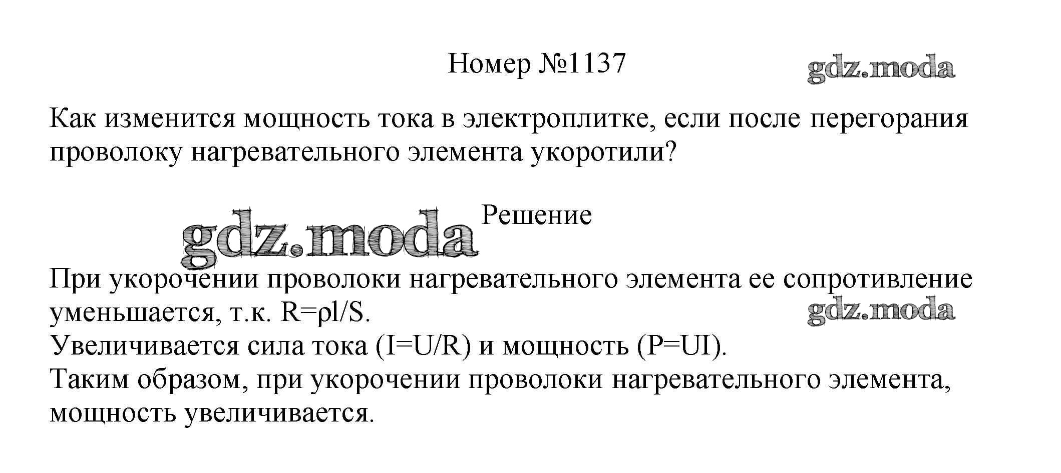 ГДЗ решение к заданию № 1137 Физика 7-9 классы сборник вопросов и задач Марон А.Е. Дрофа 2013 ФГОС бесплатно на гдз.мода!