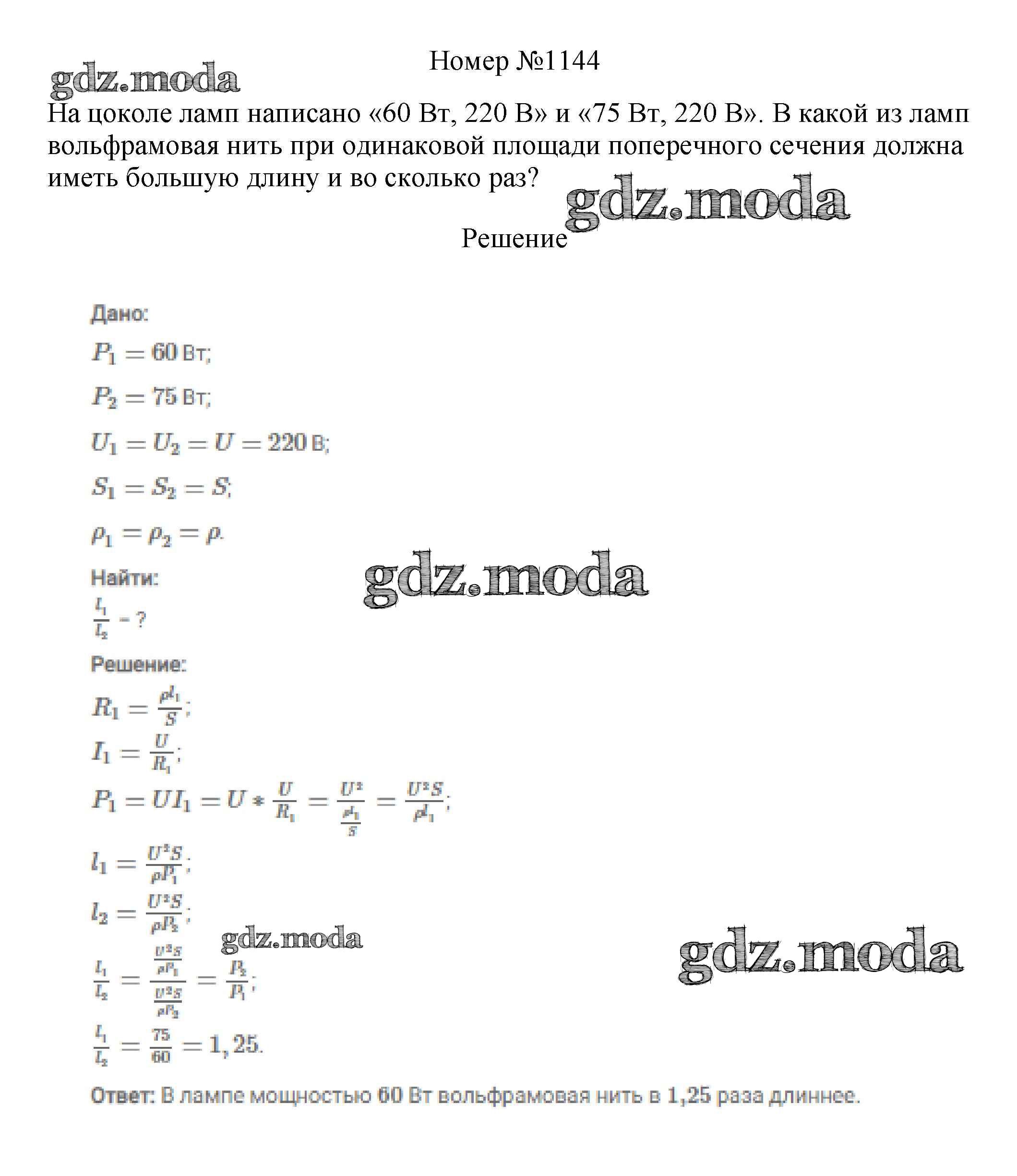 ОТВЕТ на задание № 1144 Сборник вопросов и задач по Физике 7-9 класс Марон Вертикаль