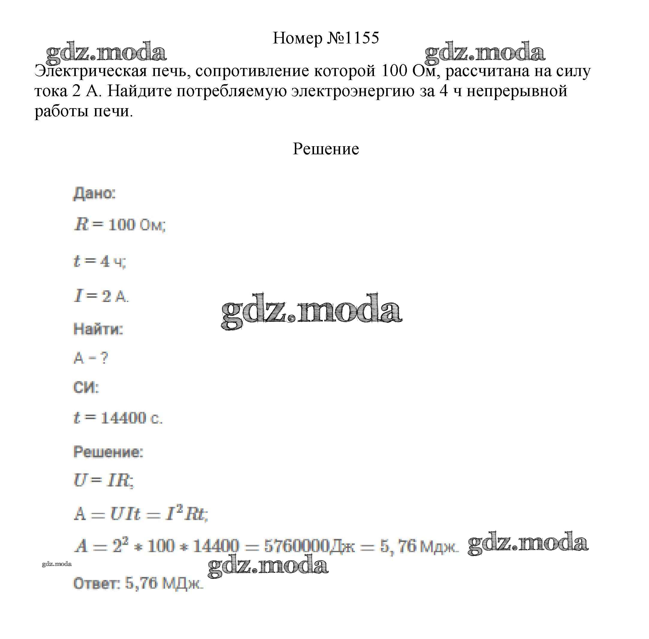 ГДЗ решение к заданию № 1155 Физика 7-9 классы сборник вопросов и задач Марон А.Е. Дрофа 2013 ФГОС бесплатно на гдз.мода!