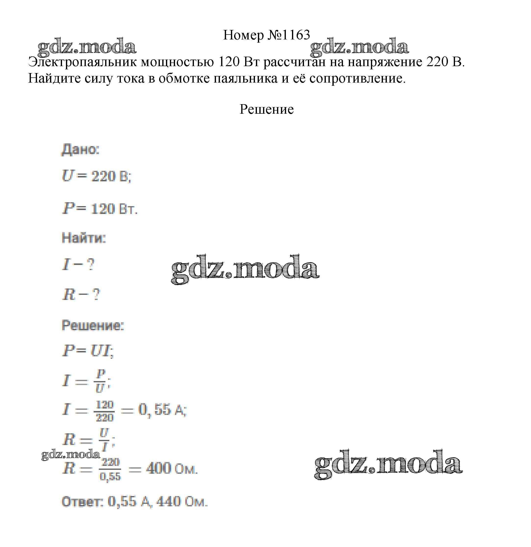 ГДЗ решение к заданию № 1163 Физика 7-9 классы сборник вопросов и задач Марон А.Е. Дрофа 2013 ФГОС бесплатно на гдз.мода!