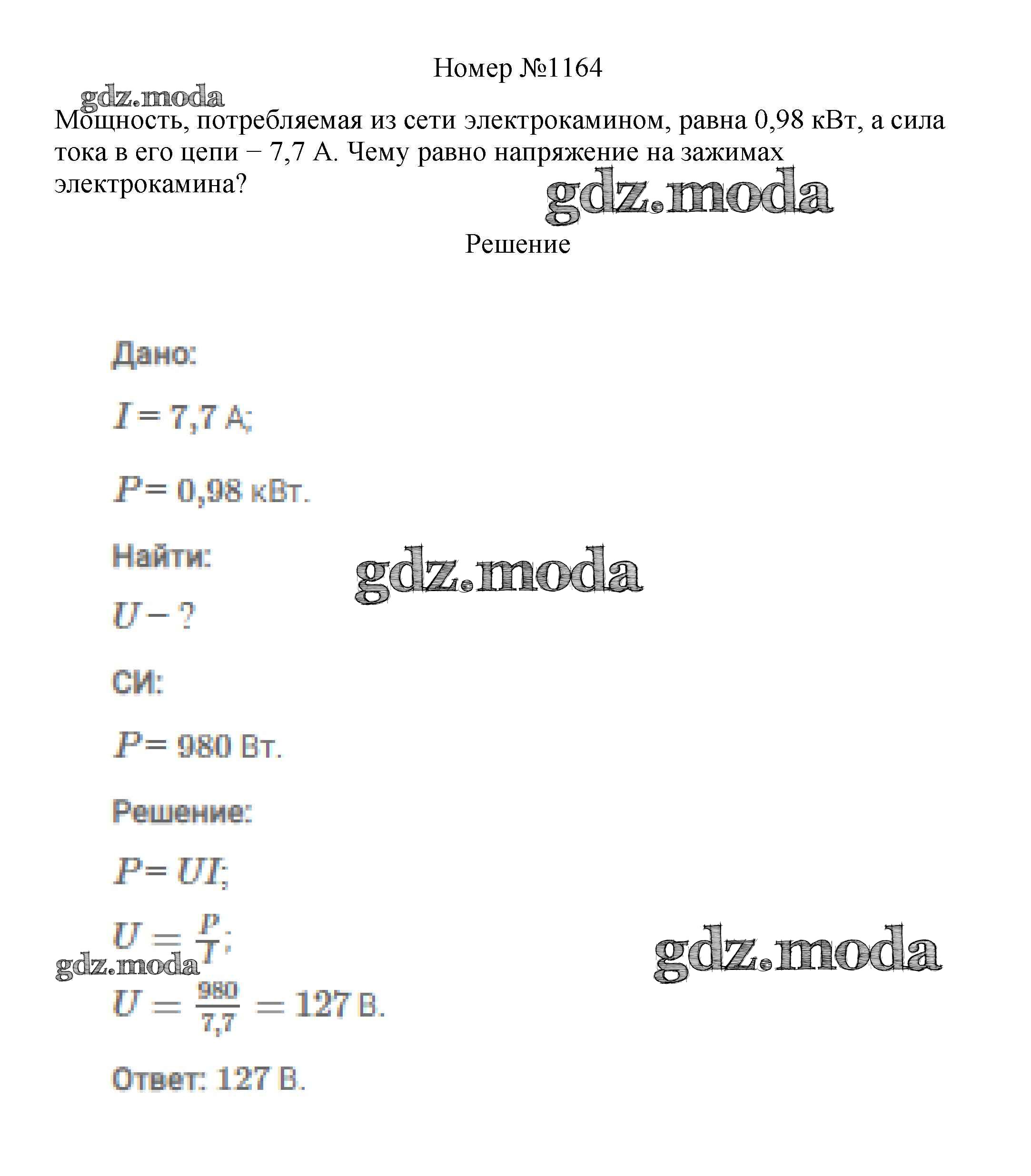 ГДЗ решение к заданию № 1164 Физика 7-9 классы сборник вопросов и задач Марон А.Е. Дрофа 2013 ФГОС бесплатно на гдз.мода!