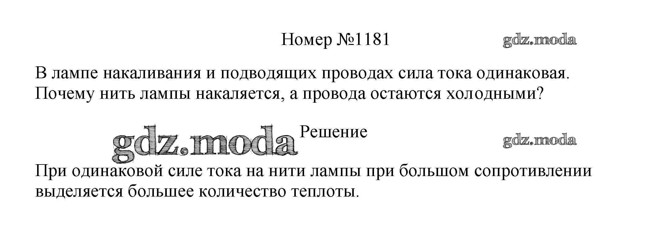 ГДЗ решение к заданию № 1181 Физика 7-9 классы сборник вопросов и задач Марон А.Е. Дрофа 2013 ФГОС бесплатно на гдз.мода!