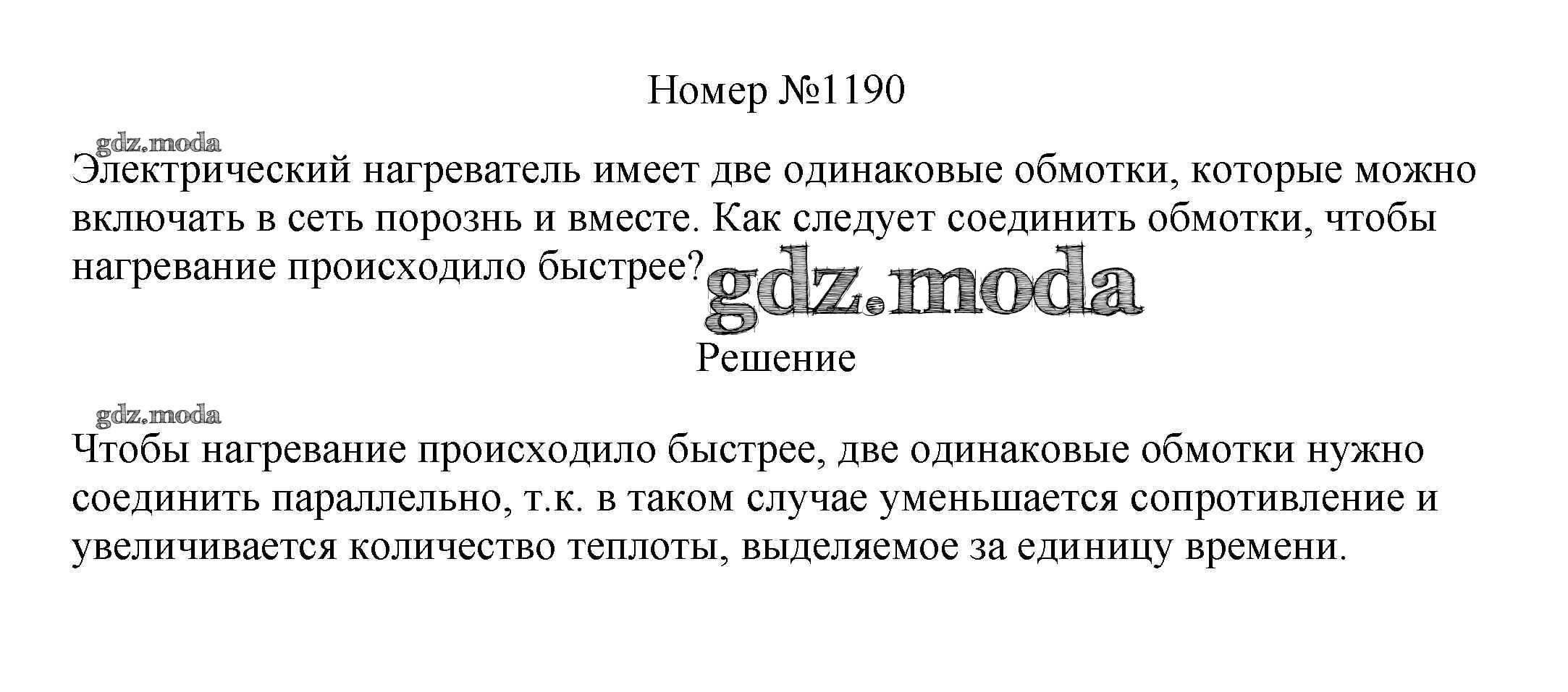 ГДЗ решение к заданию № 1190 Физика 7-9 классы сборник вопросов и задач Марон А.Е. Дрофа 2013 ФГОС бесплатно на гдз.мода!