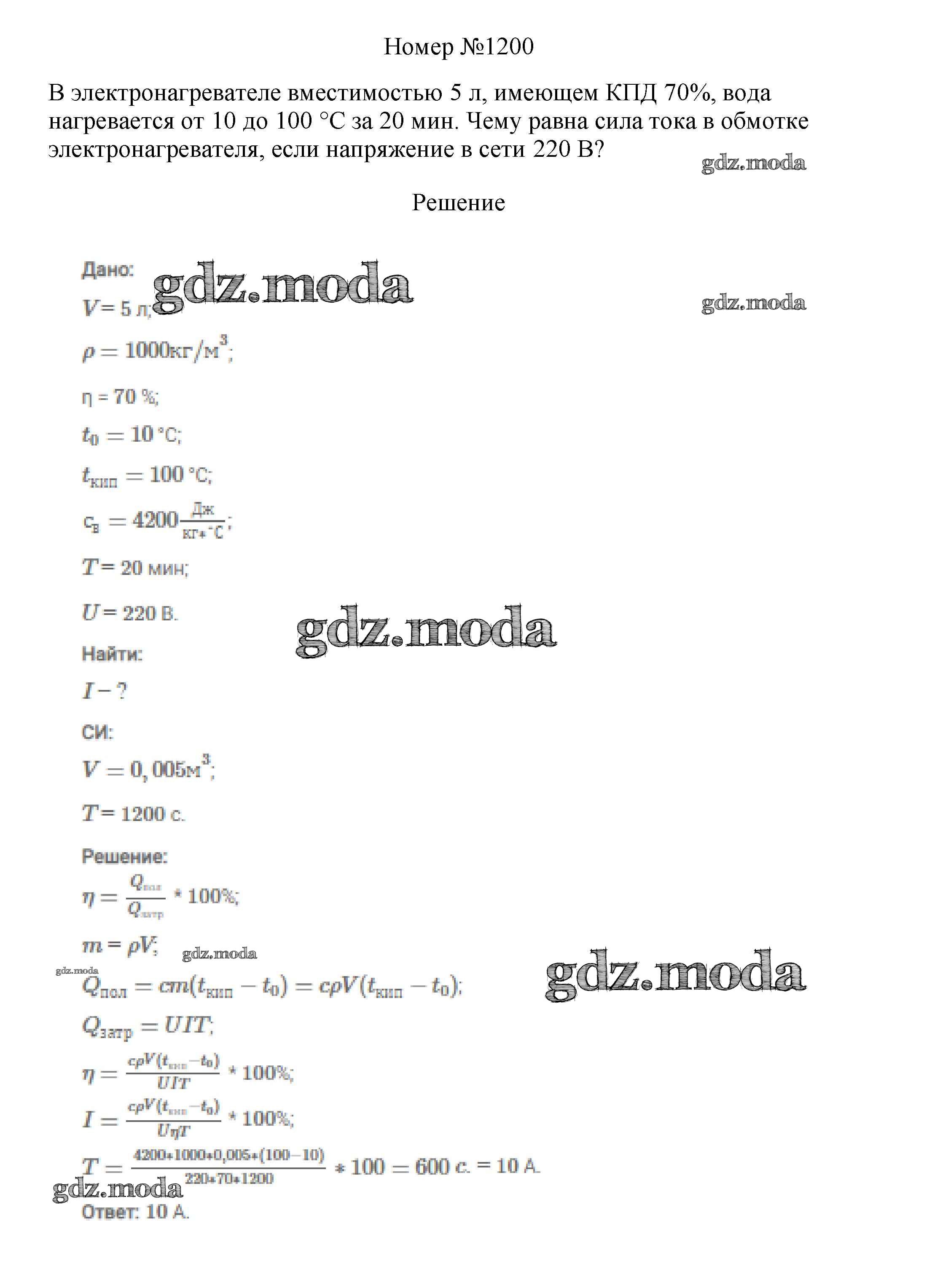 ГДЗ решение к заданию № 1200 Физика 7-9 классы сборник вопросов и задач Марон А.Е. Дрофа 2013 ФГОС бесплатно на гдз.мода!