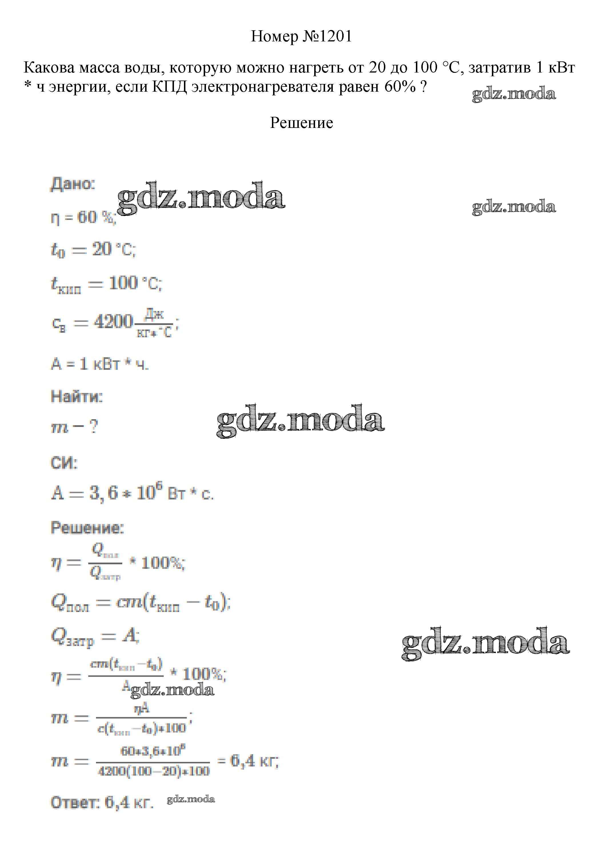 ОТВЕТ на задание № 1201 Сборник вопросов и задач по Физике 7-9 класс Марон Вертикаль